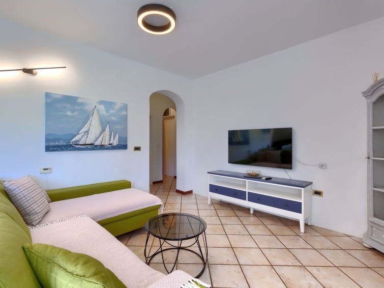 3-room apartment 80 m2, on the ground floor. Living/dining room with 1 sofabed (140 cm, length 200 cm), satellite TV (flat screen), air conditioning. Exit to the terrace, to the swimming pool. 2 rooms, each room with 1 french bed (160 cm, length 200 cm). Open kitchen (oven, dishwasher, 4 ceramic glass hob hotplates, microwave, freezer, electric coffee machine).
