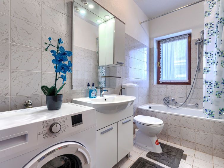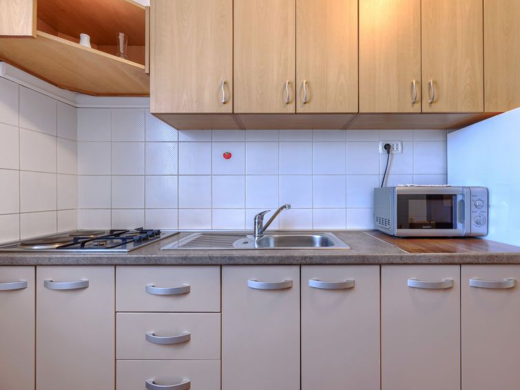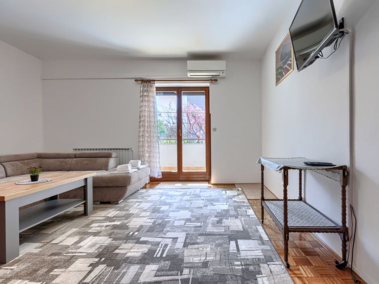 "Zoki 1", 2-room apartment 65 m2, on the upper ground floor. Living/sleeping room with 1 double sofabed (140 cm, length 200 cm), satellite TV and air conditioning. Exit to the balcony. 1 room with 1 french bed (160 cm, length 200 cm). Kitchen (2 hot plates, 2 gas rings, kettle, microwave, freezer) with dining table.