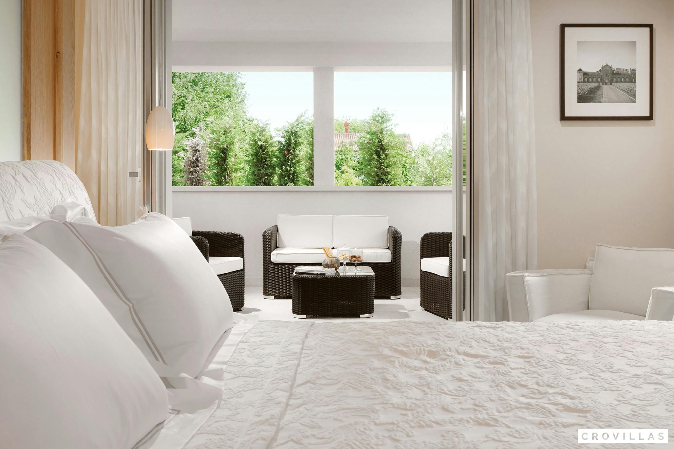 This exclusive resort villa located in Vabriga, just a few kilometres from Porec, offers a luxurious and comfortable stay. The bright and elegant villa features large windows that overlook the chic 28 m² pool and beautifully designed outdoor area with daybeds, barbecue, and covered outdoor kitchen. Indoors, guests can relax on the comfortable sofas in the living room or enjoy a meal in the open kitchen. The villa includes three double bedrooms, each with an en-suite bathroom and balcony access. The property is part of a settlement by the sea with excellent villas, 5-star rating, private pools, high-quality furniture, and exclusive services. Guests can also enjoy excellent nearby restaurants and a sandy beach only a 12-minute walk away.