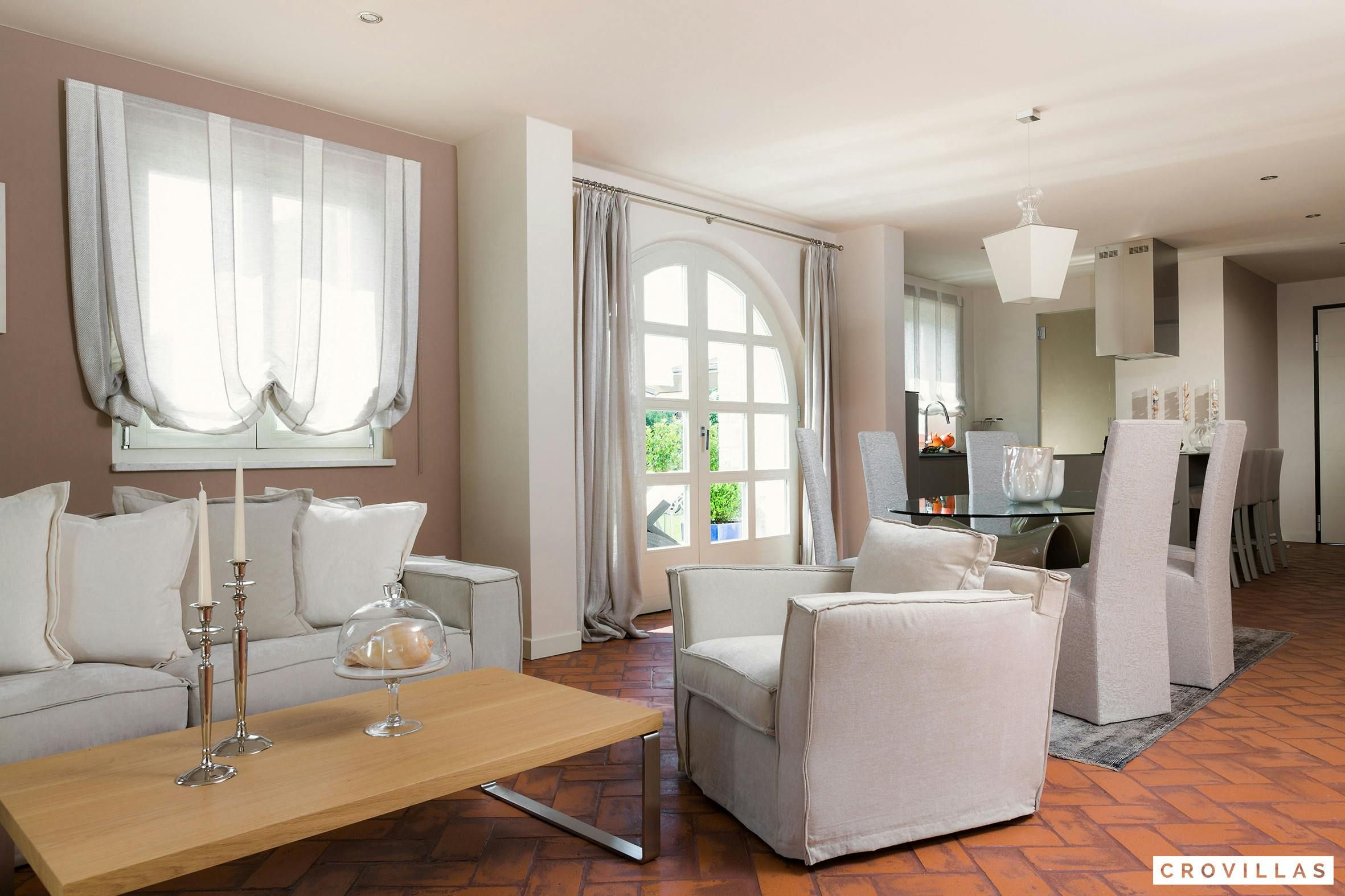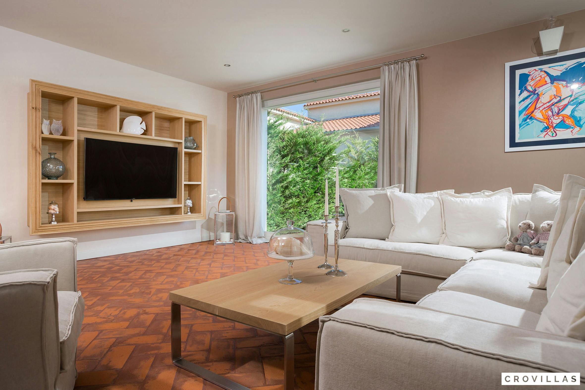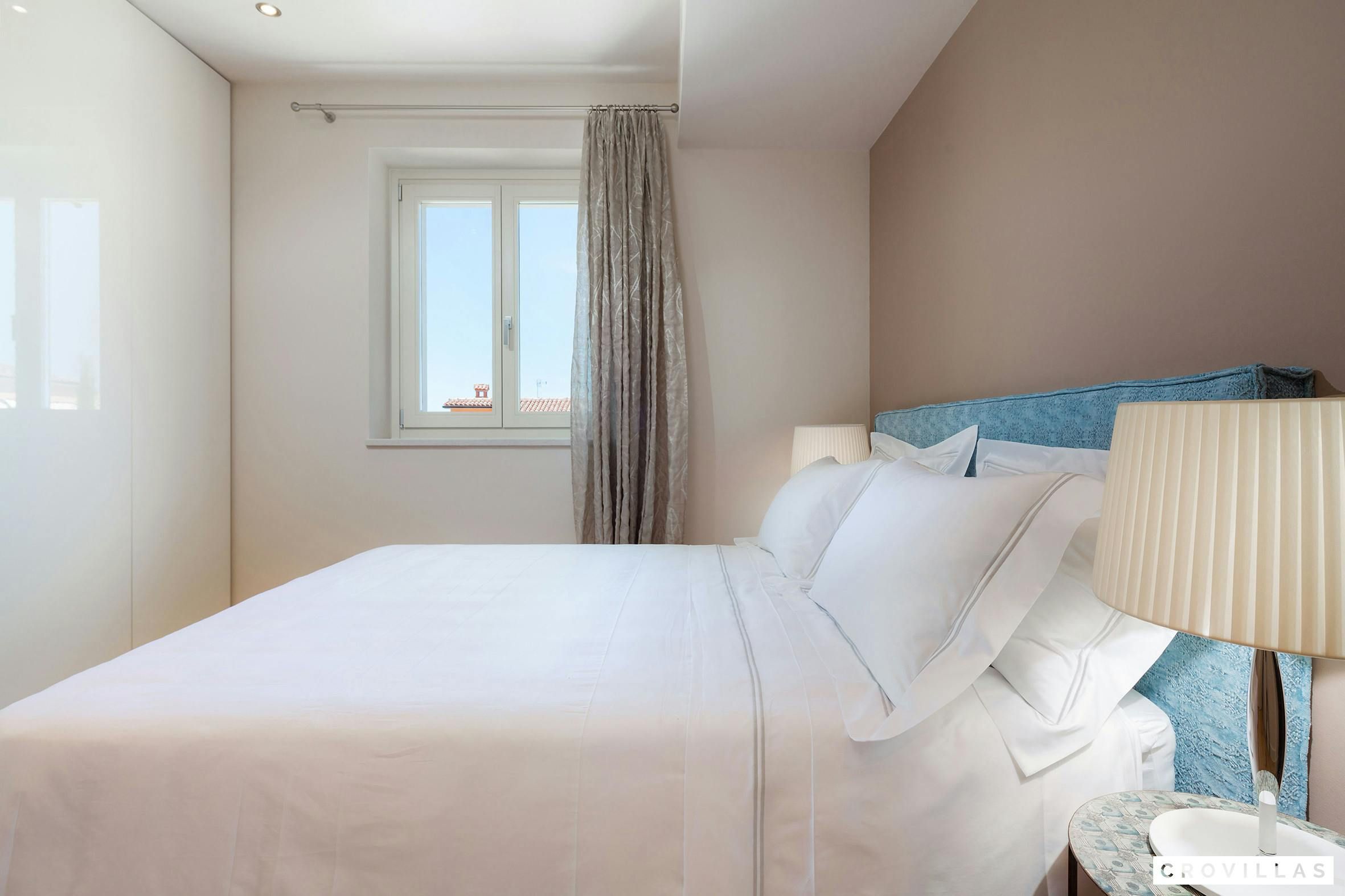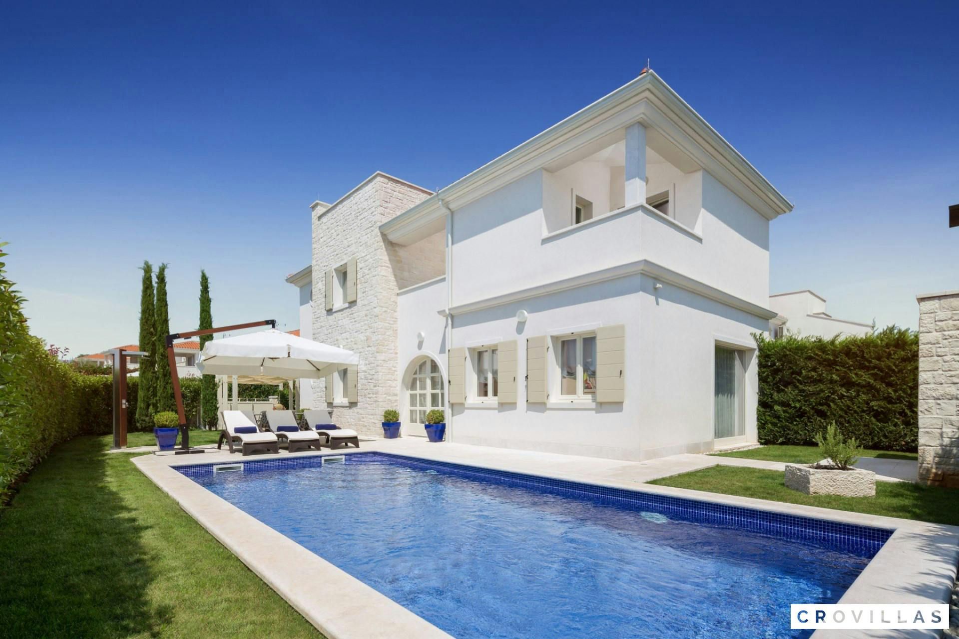 This resort villa is a perfect blend of luxury and comfort. The building, surrounded by a beautifully designed area, features large window fronts that make the villa appear cosy and bright. The terrace elegantly nestles in front of the magnificent building and frames the chic, 28m² pool, which can be accessed via a wide staircase for sporty laps as well as for shallow gliding in the refreshing water. Very comfortable daybeds invite you to extended relaxation hours. The barbecue and covered outdoor kitchen guarantee an enjoyable evening dinner at the beautiful large table located in the outdoor dining room. The interior of the very spacious villa is distinguished and uncompromisingly exclusive with modern lighting and decoration that underline the upscale ambience. The upper floor houses two double bedrooms, each with an en suite bathroom, one of which also has access to the balcony with comfortable seating.