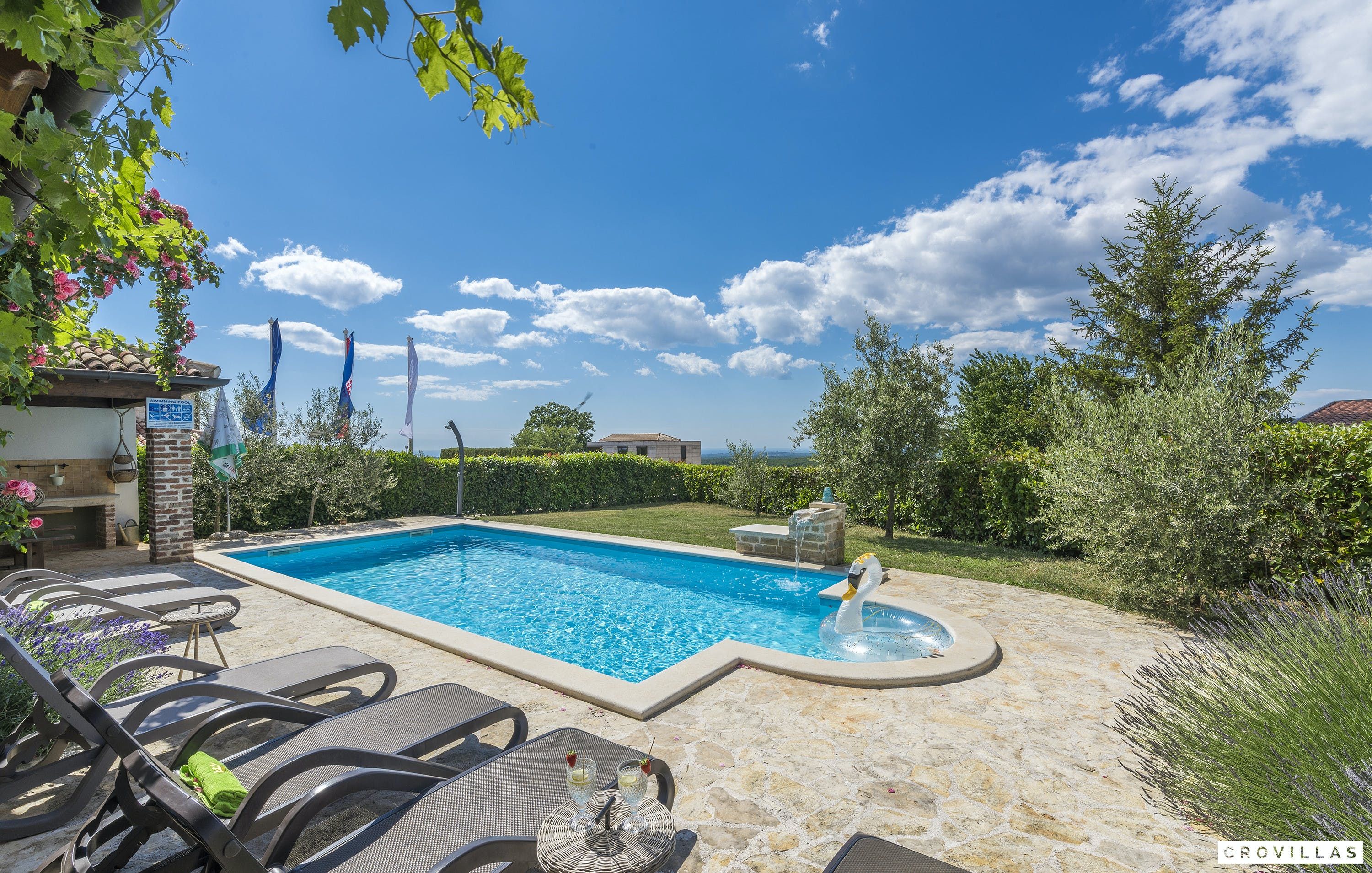 This luxurious Croatian villa boasts breathtaking views of the western Adriatic Sea and is located just a short distance from the picturesque town of Visnjan and the bustling city of Poreč. With modern amenities, top-notch furnishings, and a prime location, this property offers the ultimate in comfort and luxury for your next family vacation. Spend your days exploring the local attractions and activities or relax and take in the stunning views from the comfort of your own private pool.