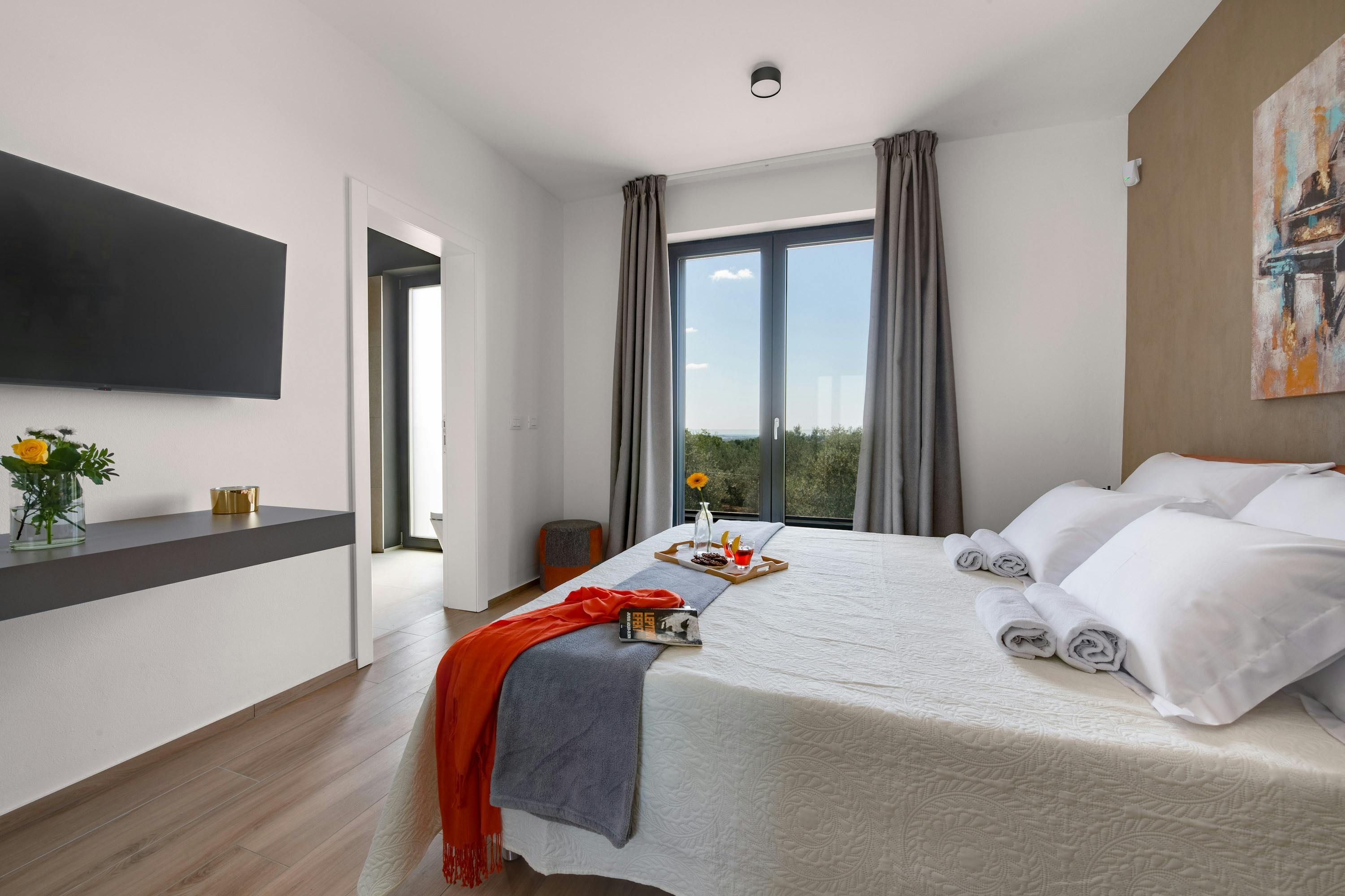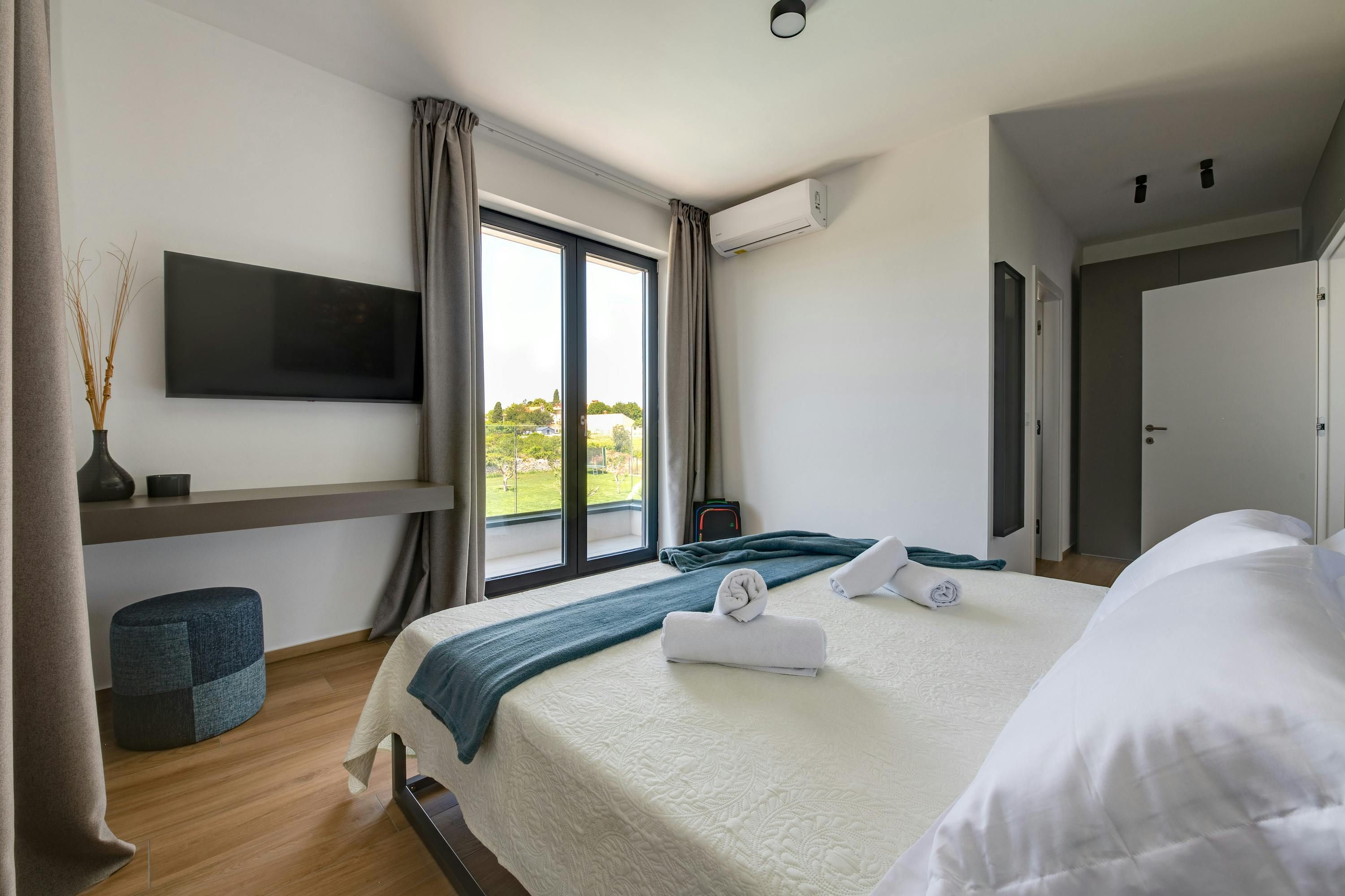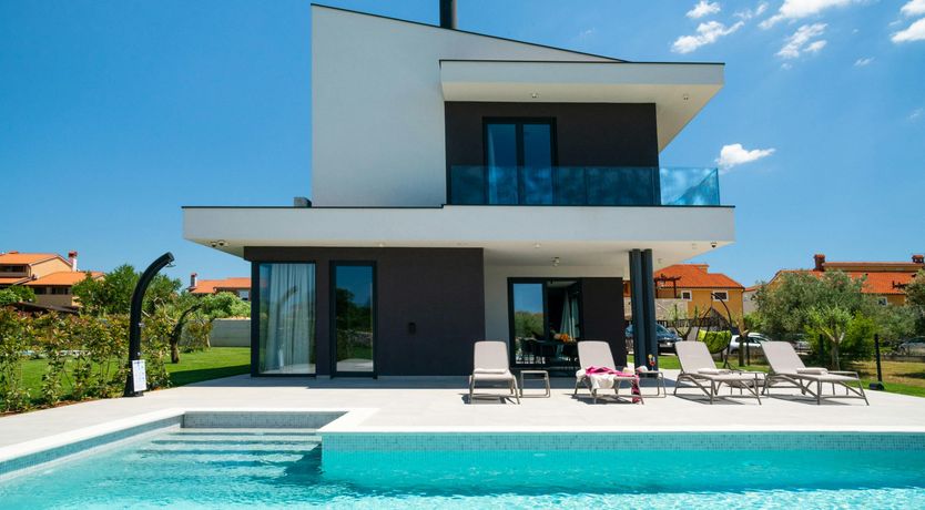 At this sleek villa, there’s no shortage of sun-soaked spots. Our favourite might be the roof terrace, where you can unwind in the hot tub while enjoying panoramic sea views as far as the Brijuni Islands and Pula. The private wellness area is another surprise – how about starting your day with a sauna session? Meanwhile, little ones will love the shared playground on the lawn – that's if you don't have plans to drive to the nearby beach, where they'll have even more space to play.