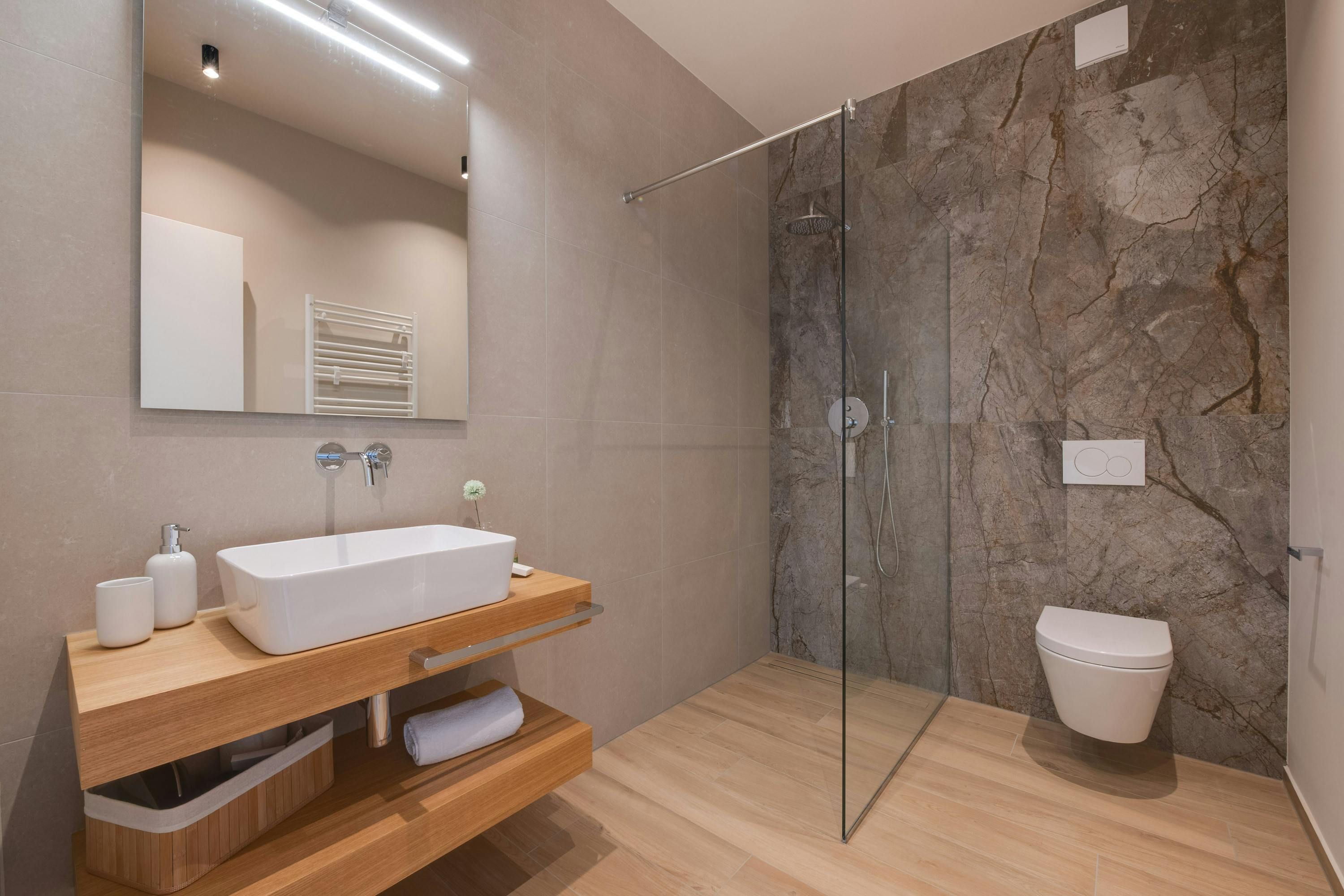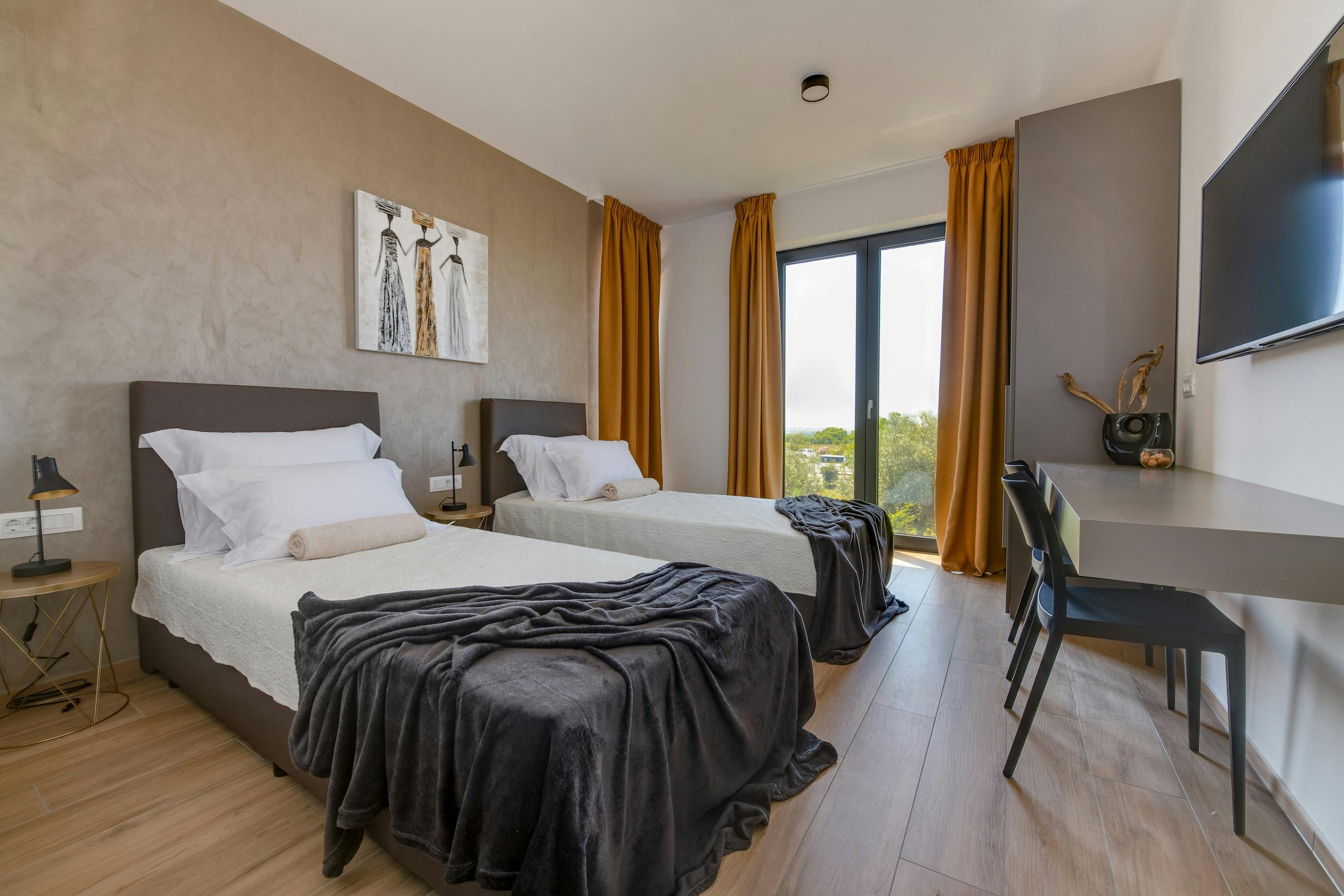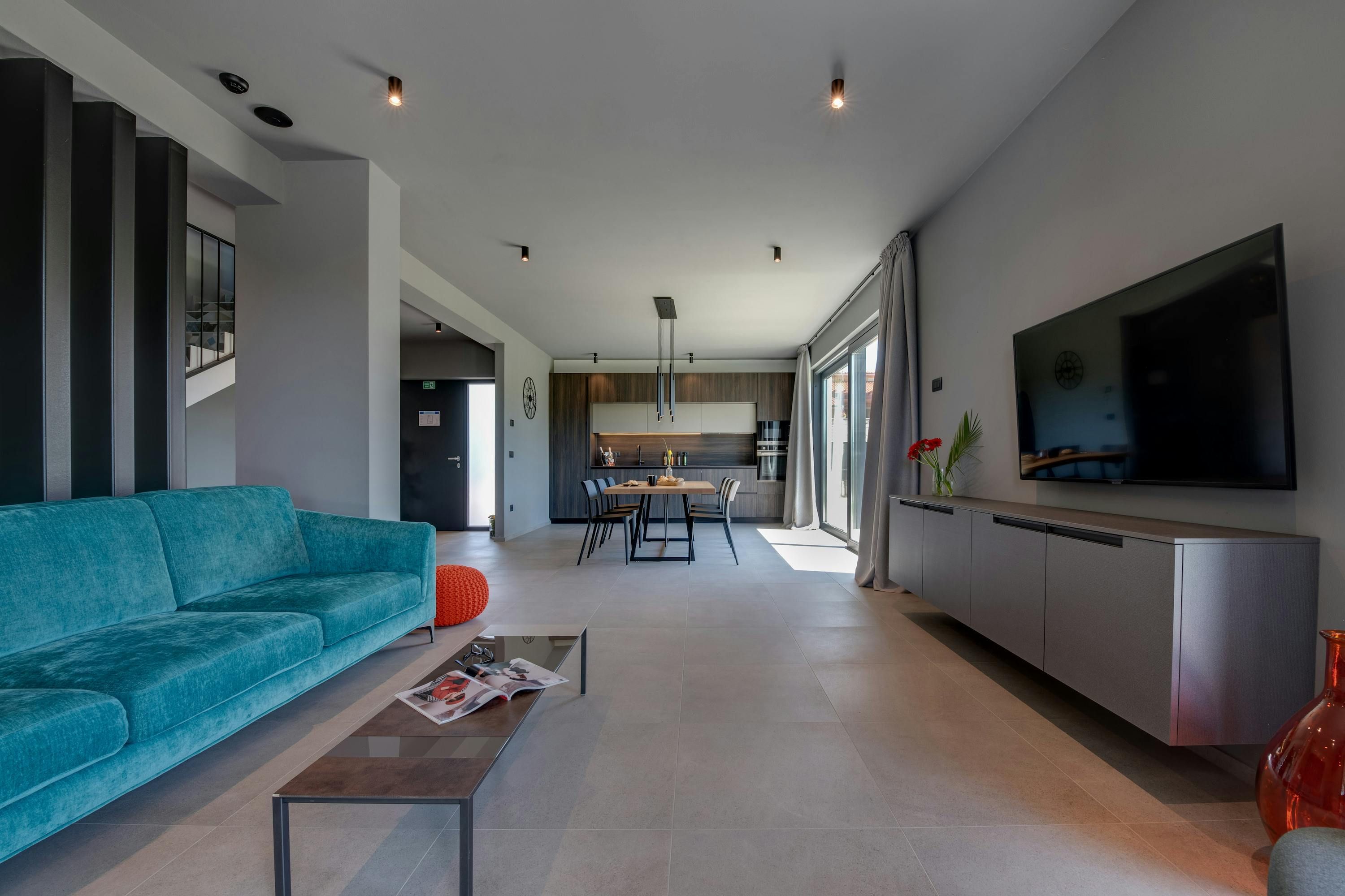At this sleek villa, there’s no shortage of sun-soaked spots. Our favourite might be the roof terrace, where you can unwind in the hot tub while enjoying panoramic sea views as far as the Brijuni Islands and Pula. The private wellness area is another surprise – how about starting your day with a sauna session? Meanwhile, little ones will love the shared playground on the lawn – that's if you don't have plans to drive to the nearby beach, where they'll have even more space to play.