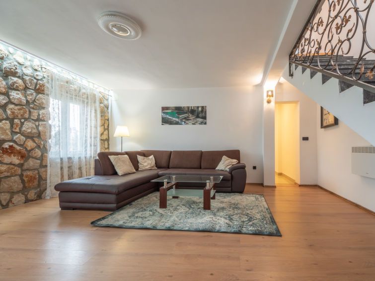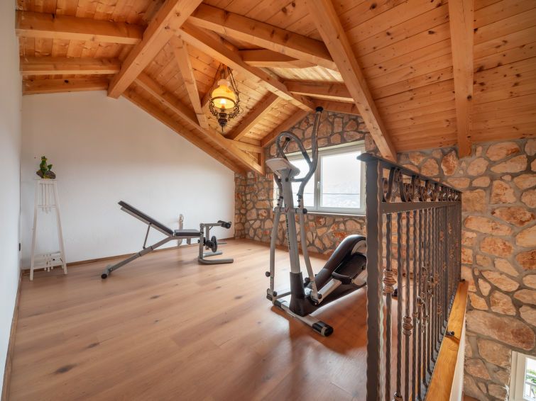 6-room semi-detached house 190 m2 on 3 levels. Living/dining room 20 m2 with Scandinavian wood stove and satellite TV. Exit to the terrace, to the swimming pool. 2 rooms, each room with 1 double bed (160 cm, length 200 cm). Exit to the terrace, to the swimming pool. Shower/WC. Wood heating, forced-air heating (extra).