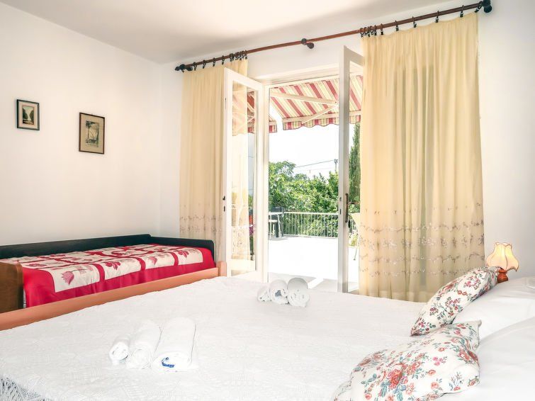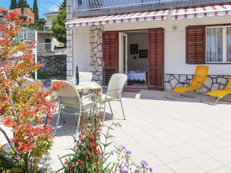 Good location, the terrace in the photo is half the size (parking spaces) and needs updating, but the old one looked nicer :). Restaurants and a shop are within walking distance. Large bedrooms, access to the terrace from one bedroom or through the front door. The living room with kitchenette is very small. The washing machine costs 5 euros. Free internet, clean, and has a sea view. A barbecue would be nice, but there's not much space. The walk from the beach, about 150 meters away, is quite strenuous, so people with walking difficulties should consider this. I recommend it.