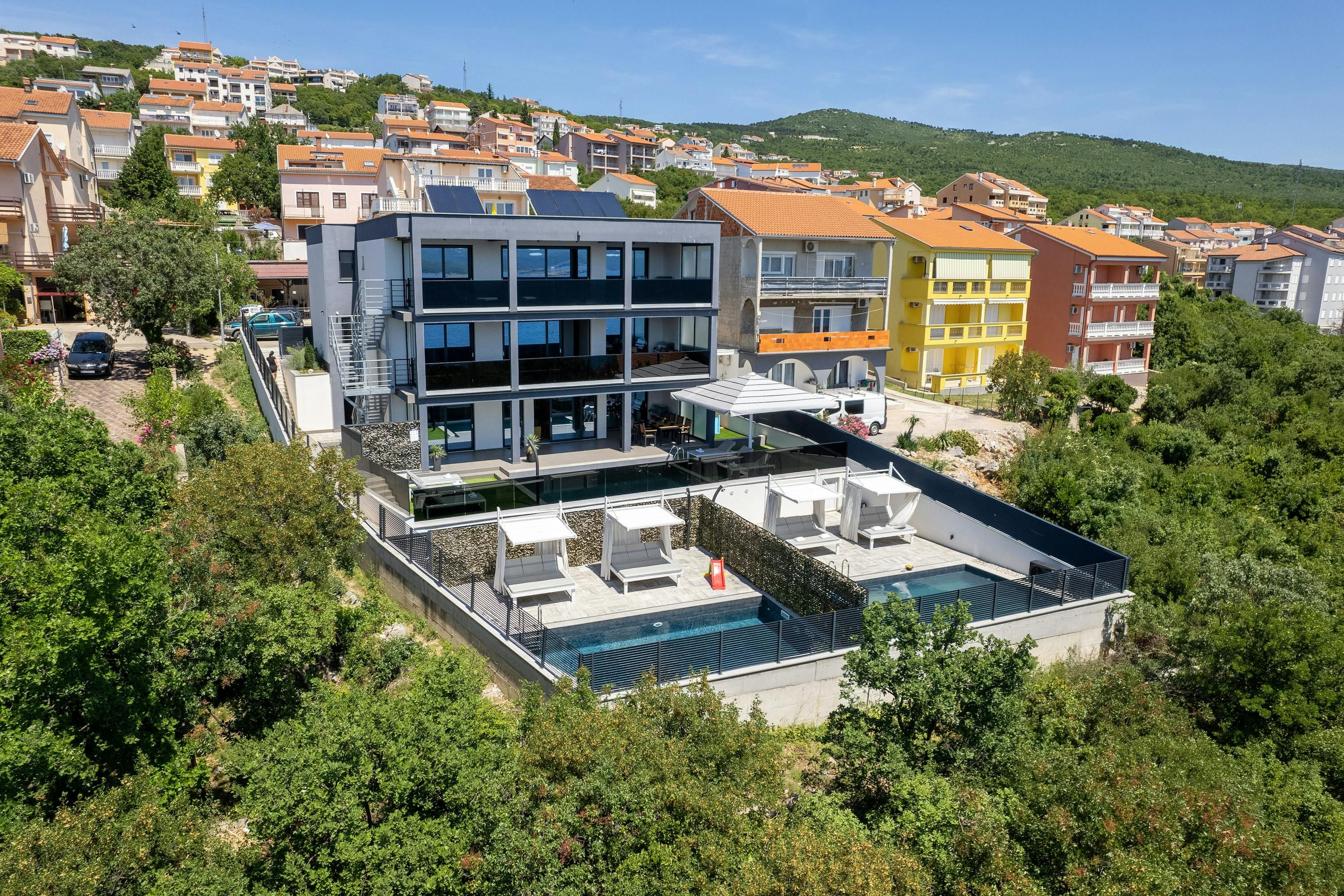 There's something for the whole family to enjoy when you stay at this modern apartment in Crikvenica. This popular resort offers everything from thrilling watersports to an abundance of seafront cafes and bars – that's if you feel like leaving home at all. You can relax with sea views on the private terrace, which also offers a swimming pool and plenty of lounge space. Inside, the sliding glass doors ensure the view is never far away, and the open-plan layout is great for convivial evenings together. But you'll probably want to head to the alfresco dining table for dinner – you're within walking distance of the supermarket, so barbecue nights are easy to arrange.