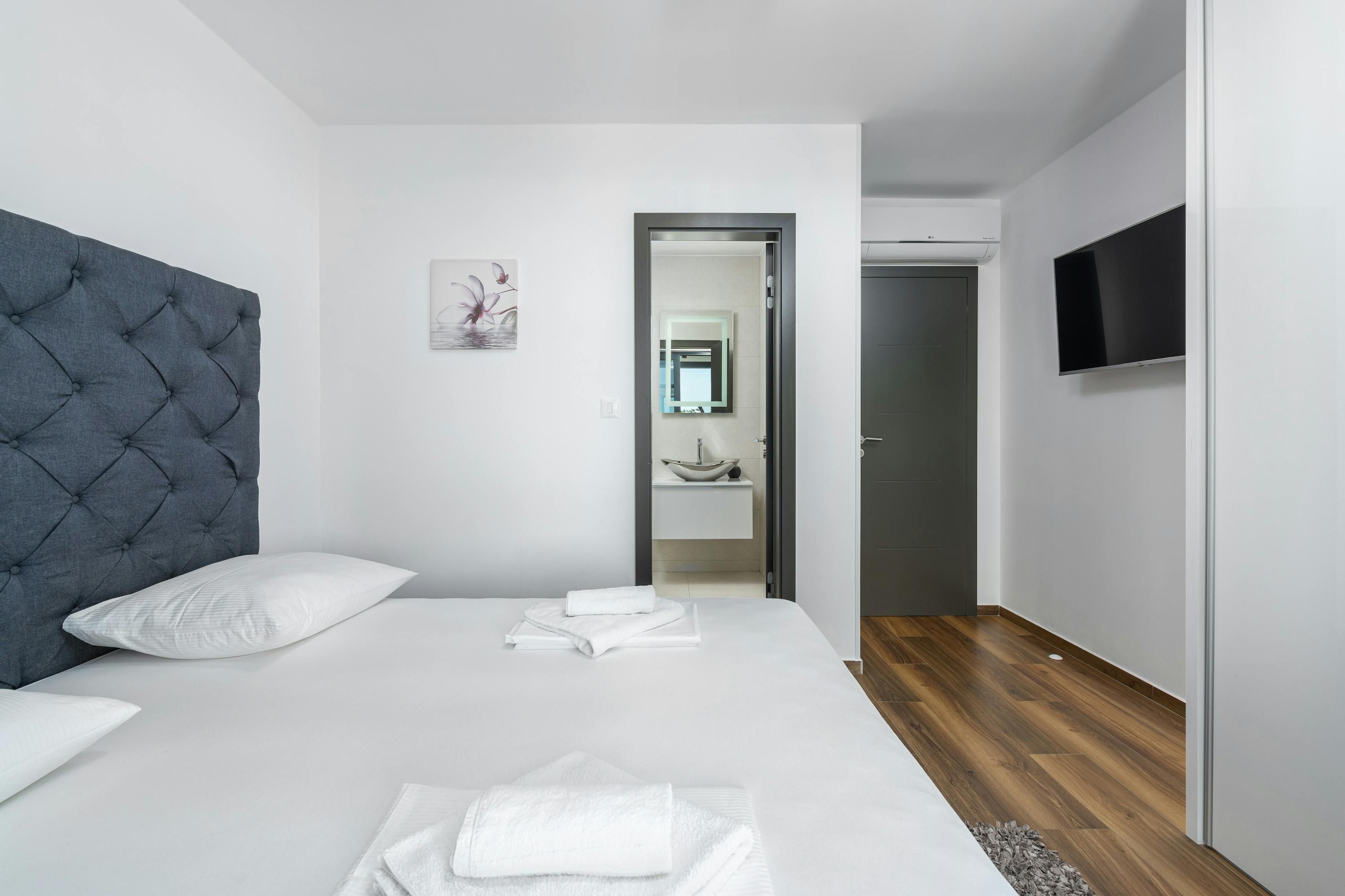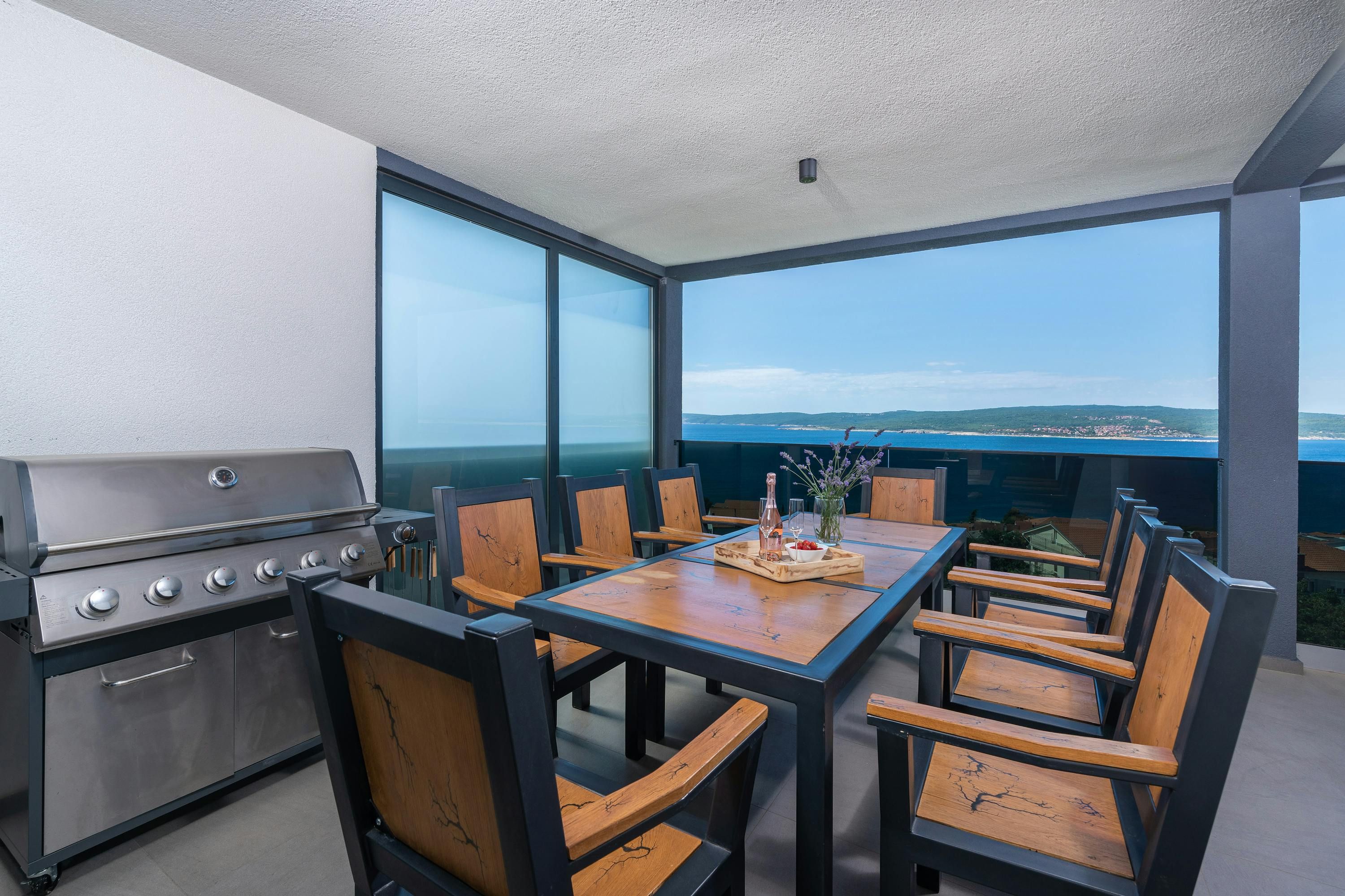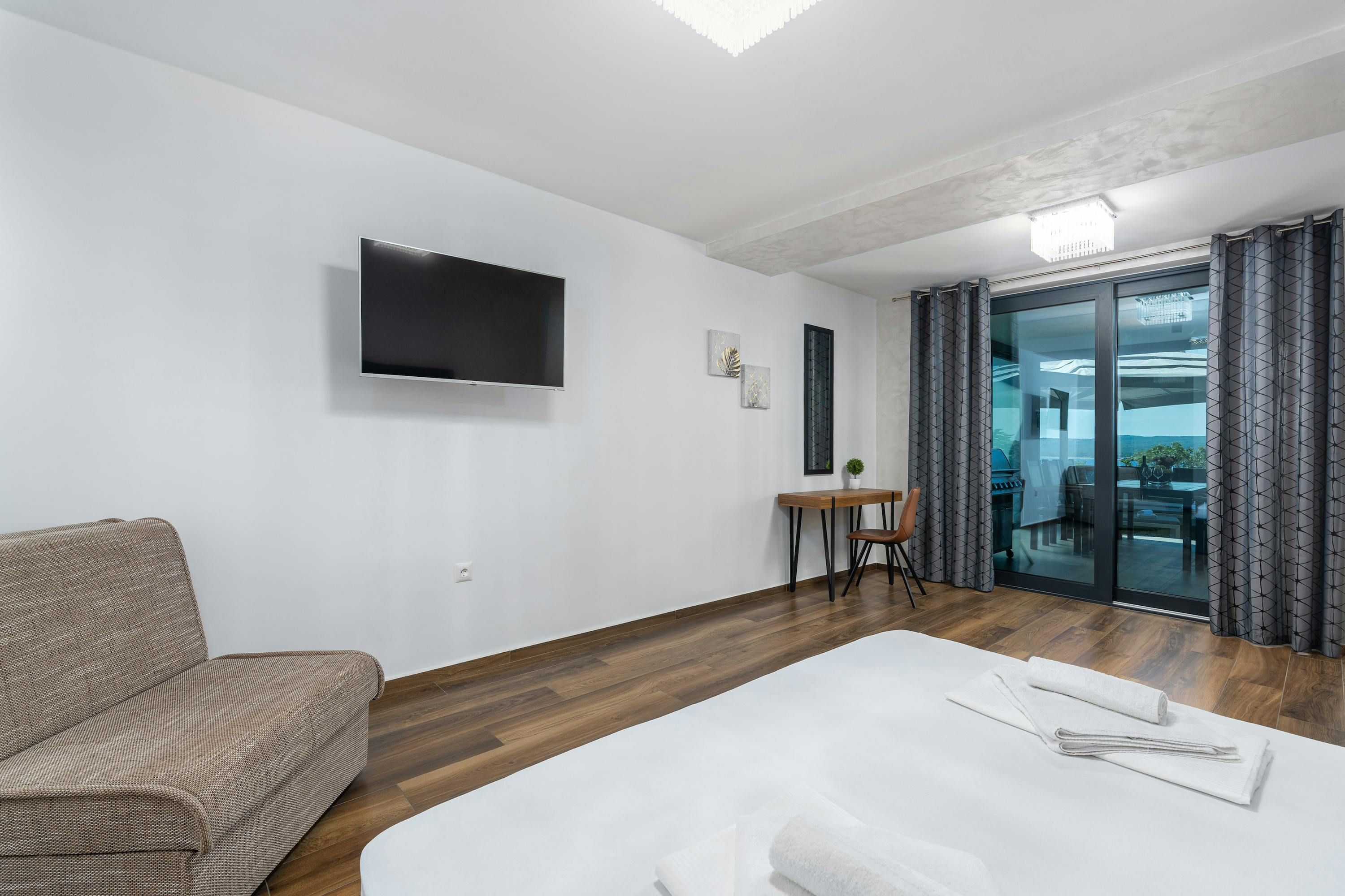 Set in the coastal town of Crikvenica, this townhouse is an ideal base for group stays. It's divided into three apartments across three floors, each with its own kitchen. All bedrooms have ensuites, plus with three heated pools, there’s plenty of space to spread out. The sandy beach is just a sixteen-minute stroll away, or you can simply enjoy the sea view from the multiple terraces and balconies. Local supermarkets and restaurants are easily accessible too, making this home as convenient as it is scenic.