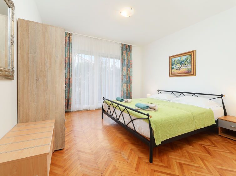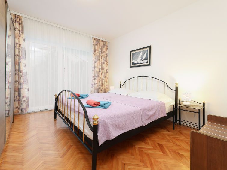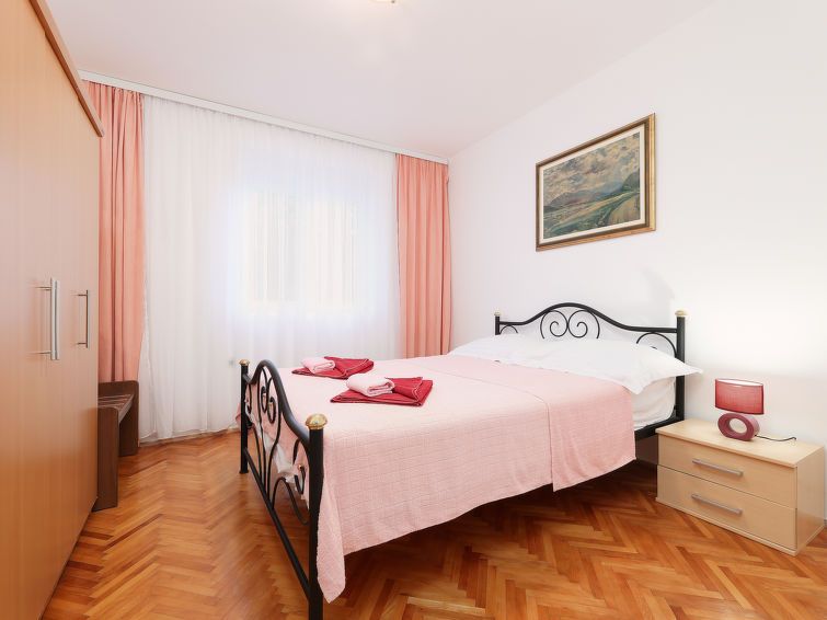 "Pintar A2", 5-room apartment 100 m2 on 1st floor. Living/dining room with 1 double sofabed (180 cm, length 200 cm), satellite TV. 3 rooms, each room with 1 double bed (2 x 90 cm, length 200 cm). Exit to the terrace. 1 room (1 x 140 cm, length 200 cm). Open kitchen (4 hot plates, oven, dishwasher, toaster, kettle, microwave, freezer, electric coffee machine).