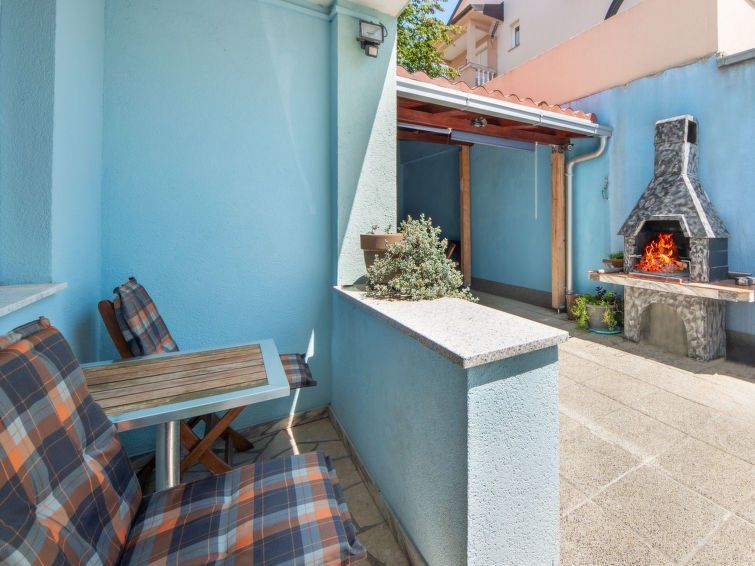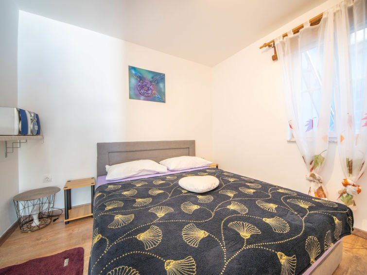 1-room studio 24 m2, on the ground floor. Object suitable for 2 adults + 1 child. Living/sleeping room with 1 sofabed (80 cm, length 180 cm), 1 french bed (160 cm, length 200 cm), digital TV and air conditioning. Exit to the terrace. Open kitchen (2 ceramic glass hob hotplates, microwave, freezer, electric coffee machine).