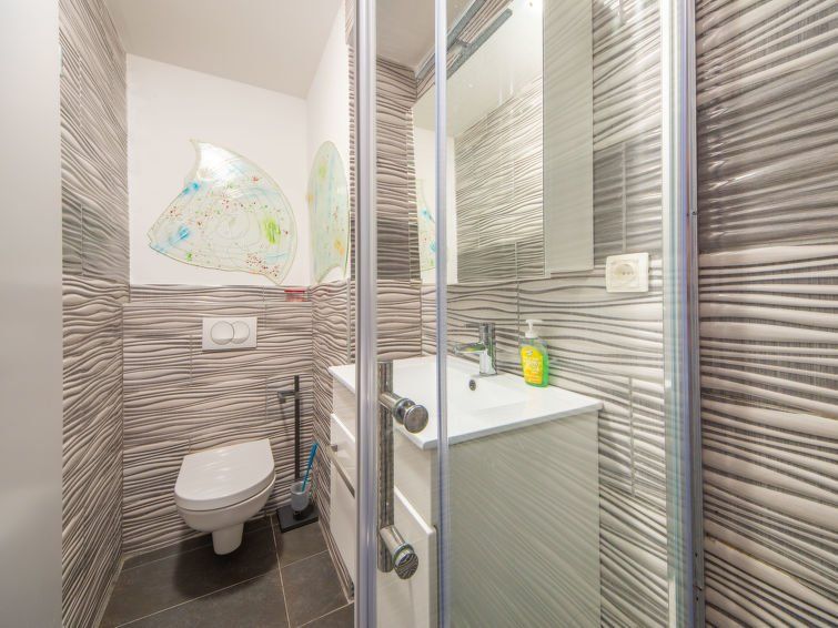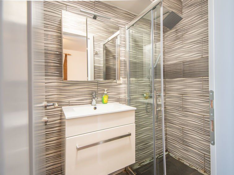 In itself OK. But it wasn't clean. Had to vacuum immediately and clean the toilet, which was already (still) dirty when we moved in. There was mold in the kitchen behind the protective wall. A fly screen on the door would have been nice, the mosquitoes were annoyingly biting us at night. The mattress was hard, I had it on my back for 10 days. The landlady was very nice. We got fresh bed linen and towels after 5 days. Modern apartment, small dishwasher, induction stove. Modern bathroom. Had a separate entrance