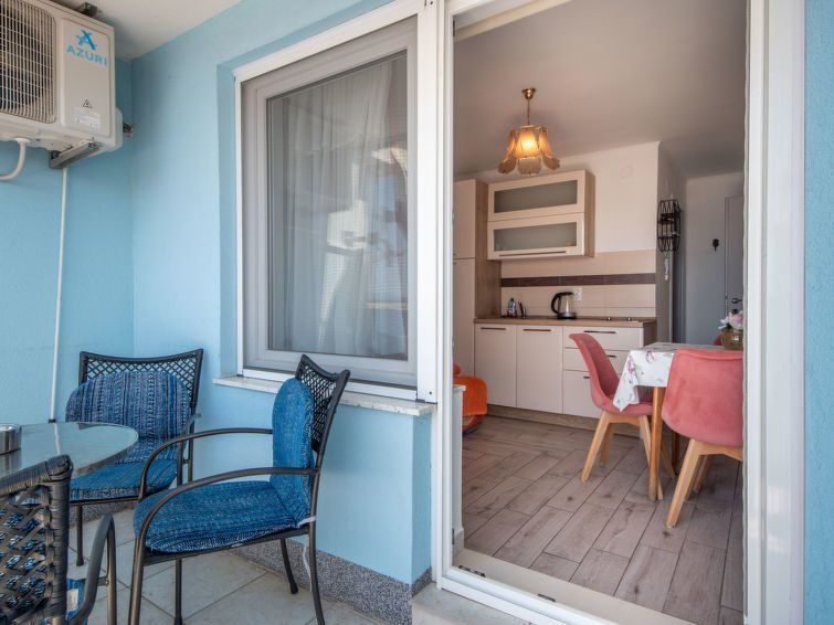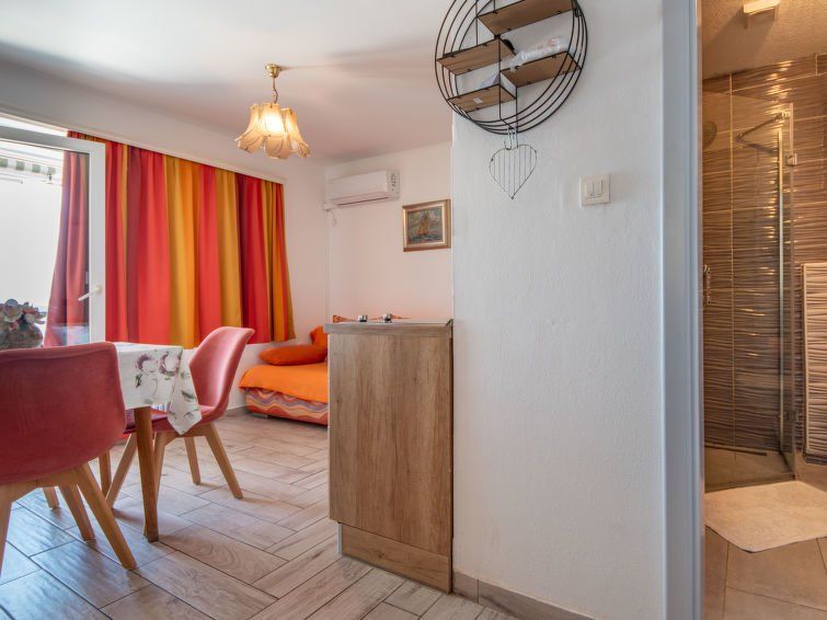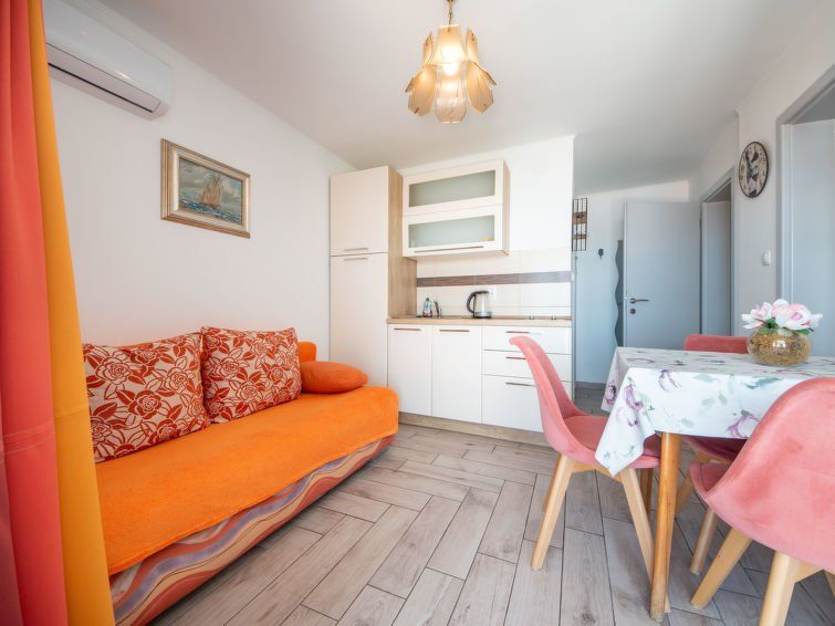 2-room apartment 32 m2 on 2nd floor. Living/dining room with 1 double sofabed (2 x 70 cm, length 190 cm), digital TV and air conditioning. Exit to the terrace. 1 room with 1 french bed (160 cm, length 200 cm). Open kitchen (2 ceramic glass hob hotplates, kettle, freezer, electric coffee machine).