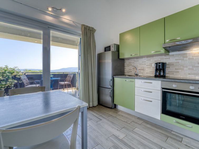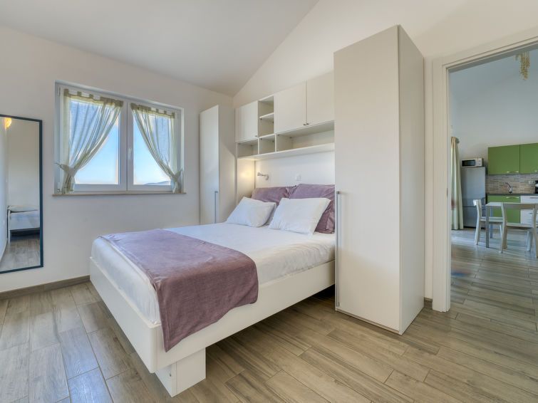 2-room apartment 40 m2 on 1st floor. Living/dining room with 1 sofabed (120 cm, length 200 cm), satellite TV and air conditioning. Exit to the balcony. 1 room with 1 bed (90 cm, length 200 cm), 1 french bed (160 cm, length 200 cm), air conditioning. Open kitchen (oven, 4 ceramic glass hob hotplates, toaster, kettle, microwave, freezer, electric coffee machine).