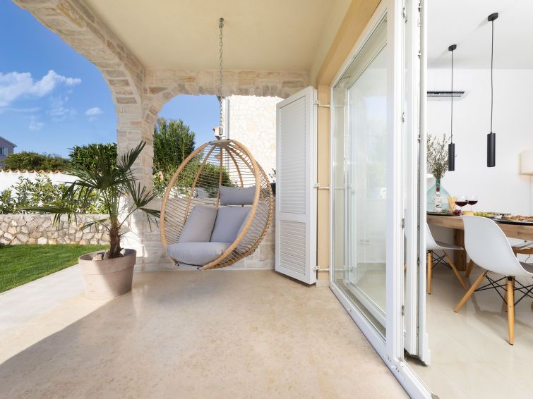 4-room villa 130 m2. Very beautiful and modern furnishings: living/dining room with 1 sofabed (90 cm, length 200 cm), satellite TV and air conditioning. Exit to the terrace. 2 rooms, each room with 1 double bed (2 x 90 cm, length 200 cm), satellite TV and air conditioning. 1 room with 1 double bed (2 x 80 cm, length 200 cm), satellite TV and air conditioning.