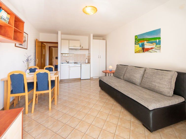2-room apartment 45 m2 on 1st floor. Living/dining room with 1 double sofabed (160 cm, length 200 cm), satellite TV (flat screen), air conditioning. Exit to the balcony. 1 room with 1 double bed (2 x 80 cm, length 200 cm). Open kitchen (2 hot plates). Shower/WC. No heating option.