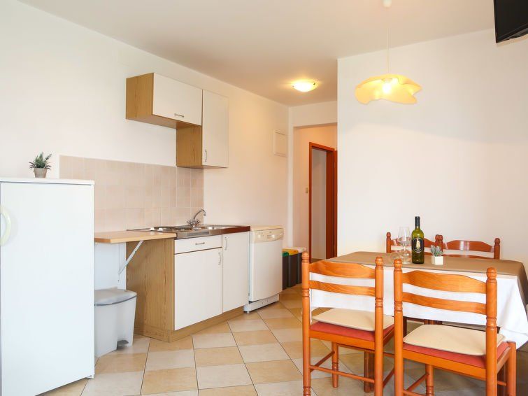 Great apartment in a nice house with 4 holiday apartments. The landlady lives in the house, speaks German and is very friendly. Very clean, very good kitchen equipment. Great view of the sea and old town from the balcony. A few minutes walk to the beach and the old town with restaurants and a few small shops. WiFi, parking available. Try the landlady and her husband's own wine! We'll be back, no criticism!