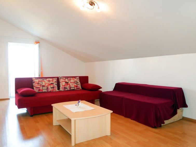"Marija", 3-room apartment 70 m2 on 2nd floor. Bright: living/sleeping room with sloping ceilings with dining table, satellite TV and air conditioning. Exit to the balcony. With sloping ceilings, 1 room with 1 french bed (160 cm, length 200 cm), shower/WC and air conditioning. 1 room with 1 french bed (160 cm, length 200 cm).