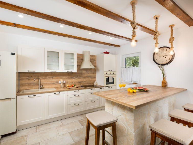 4-room house 130 m2 on 2 levels. Object suitable for 6 adults + 2 children. Tasteful and cosy furnishings: living/dining room with open-hearth fireplace (only for decoration), satellite TV and air conditioning. Exit to the terrace, to the swimming pool. 1 room with 1 french bed (160 cm, length 200 cm).