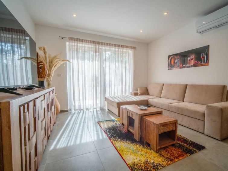8-room house 200 m2 on 2 levels. Comfortable and beautiful furnishings: living/dining room with cable TV and air conditioning. Exit to the terrace. 1 room with 1 french bed (160 cm, length 200 cm). 1 room with 2 beds (90 cm, length 200 cm). Studio with 1 bed (90 cm, length 200 cm), 1 pull-out bed (length 200 cm), shower/WC, TV and air conditioning.