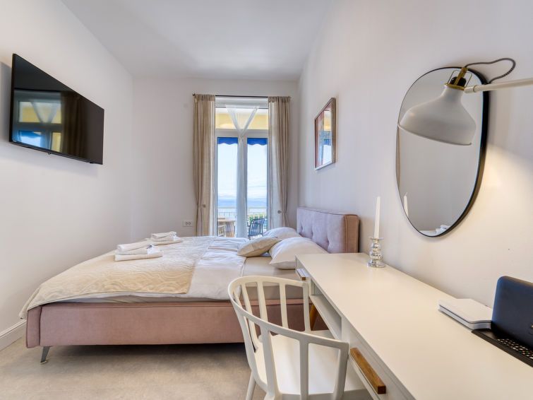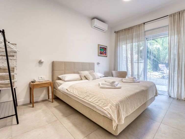 "Design Jamar", 3-room apartment 54 m2, on the upper ground floor. Renovated in 2025, tasteful and stylish furnishings: living/dining room with air conditioning. Exit to the terrace. 1 room with 1 double bed (2 x 90 cm, length 200 cm), shower/WC and cable TV (flat screen), air conditioning.