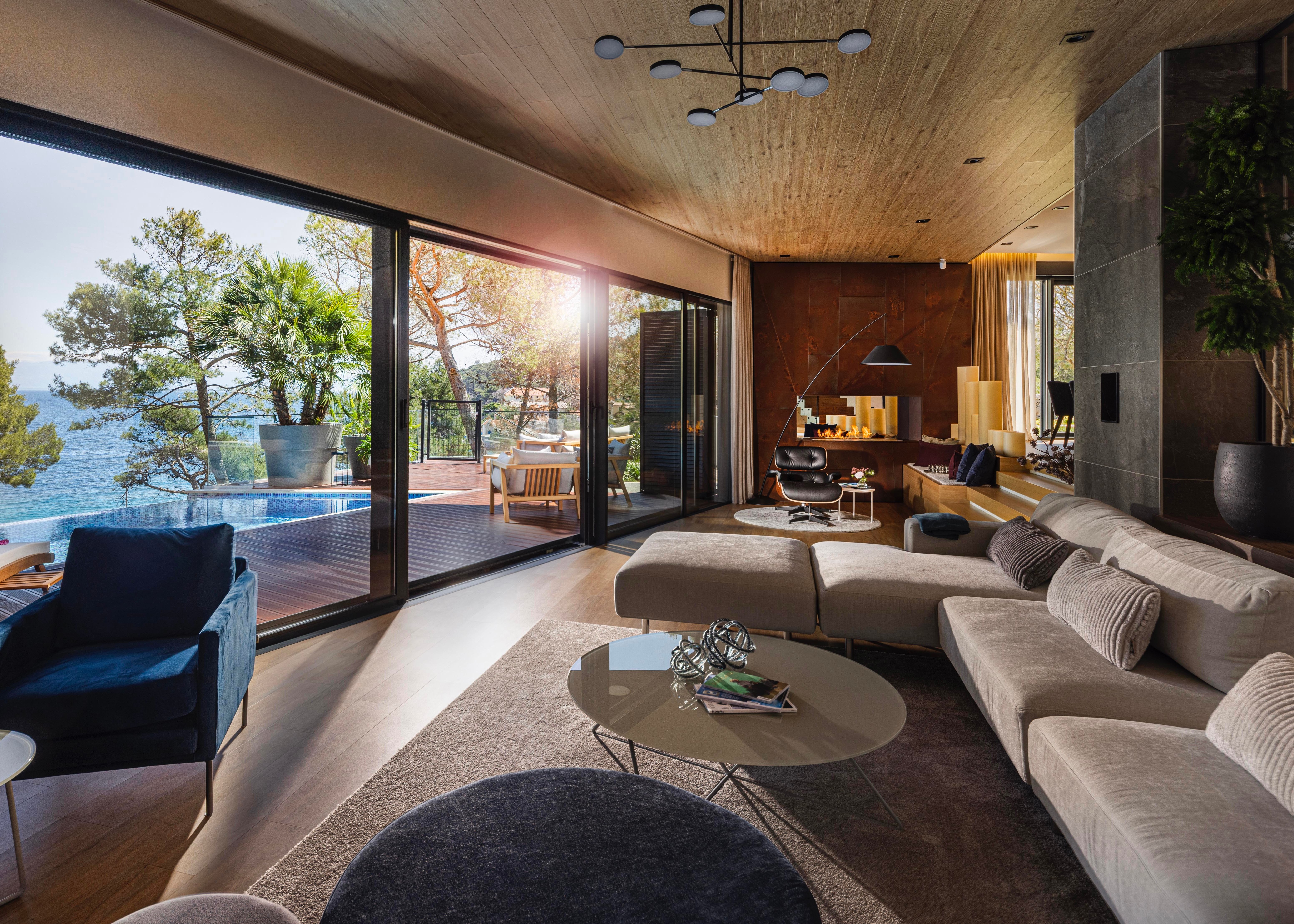 Luxury-lovers, this villa is for you. Sitting in a quiet location on the coast, it’s the perfect destination for relaxation – there’s even a rooftop wellness area with a Jacuzzi, in addition to the private heated infinity pool and sauna. Sea views can be admired from every angle, whether you’re dining alfresco on meals prepared by the private chef, waking up in top-quality bed linens, or sunbathing on the terrace or in the garden. There’s a home cinema, laser tag, and foosball, as well as a children’s dormitory with a Mickey Mouse-themed bathroom. Add in the potential for yacht and helicopter tours, and there’s something for everyone.