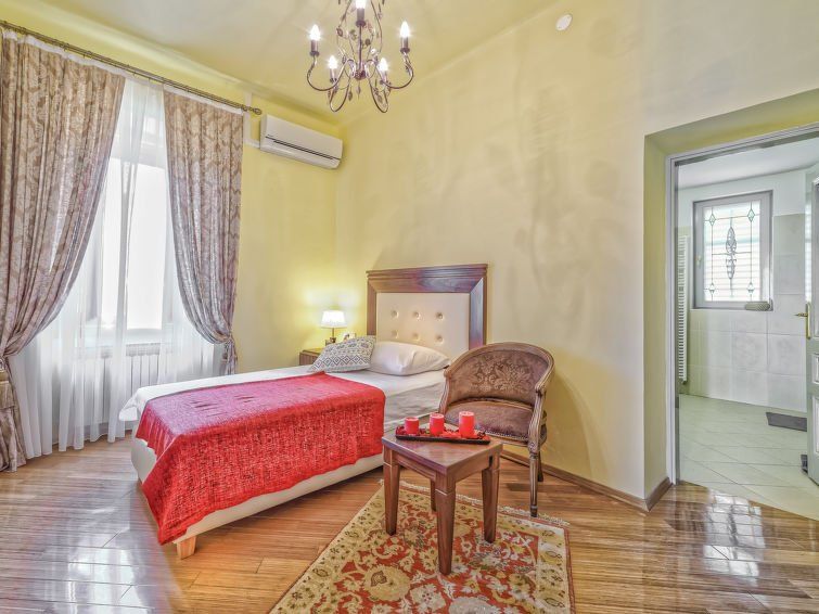 5-room villa 236 m2 on 2 levels, south facing position. Living room 18 m2 with cable TV (flat screen), air conditioning. Dining room. Kitchen (4 hot plates, oven, dishwasher, microwave, freezer, electric coffee machine). Exit to the terrace. Shower/WC. Upper floor: 1 room with 2 beds (100 cm, length 190 cm), air conditioning.
