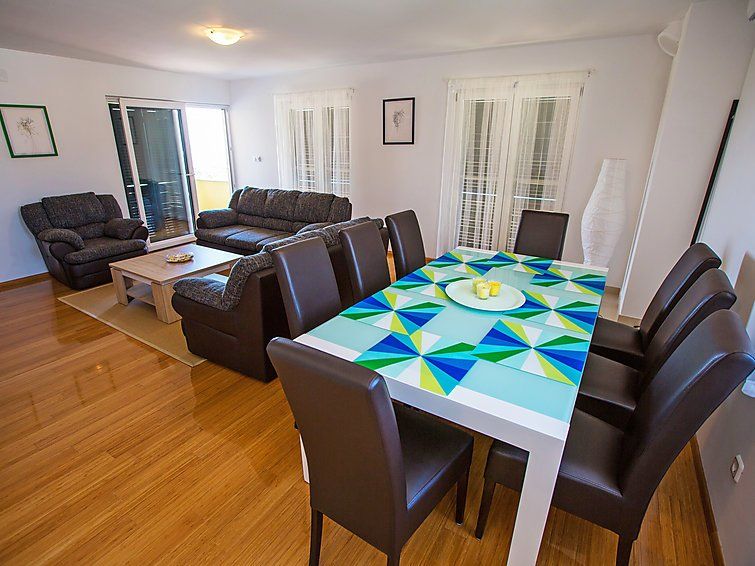 4-room apartment 100 m2 on 1st floor, south-west facing position. Tasteful furnishings: living/dining room 29 m2 with 1 double sofabed (140 cm, length 190 cm), satellite TV (flat screen), air conditioning. Exit to the balcony. 1 room with 1 french bed (160 cm, length 200 cm). 1 room with 1 french bed (160 cm, length 200 cm), TV (flat screen).