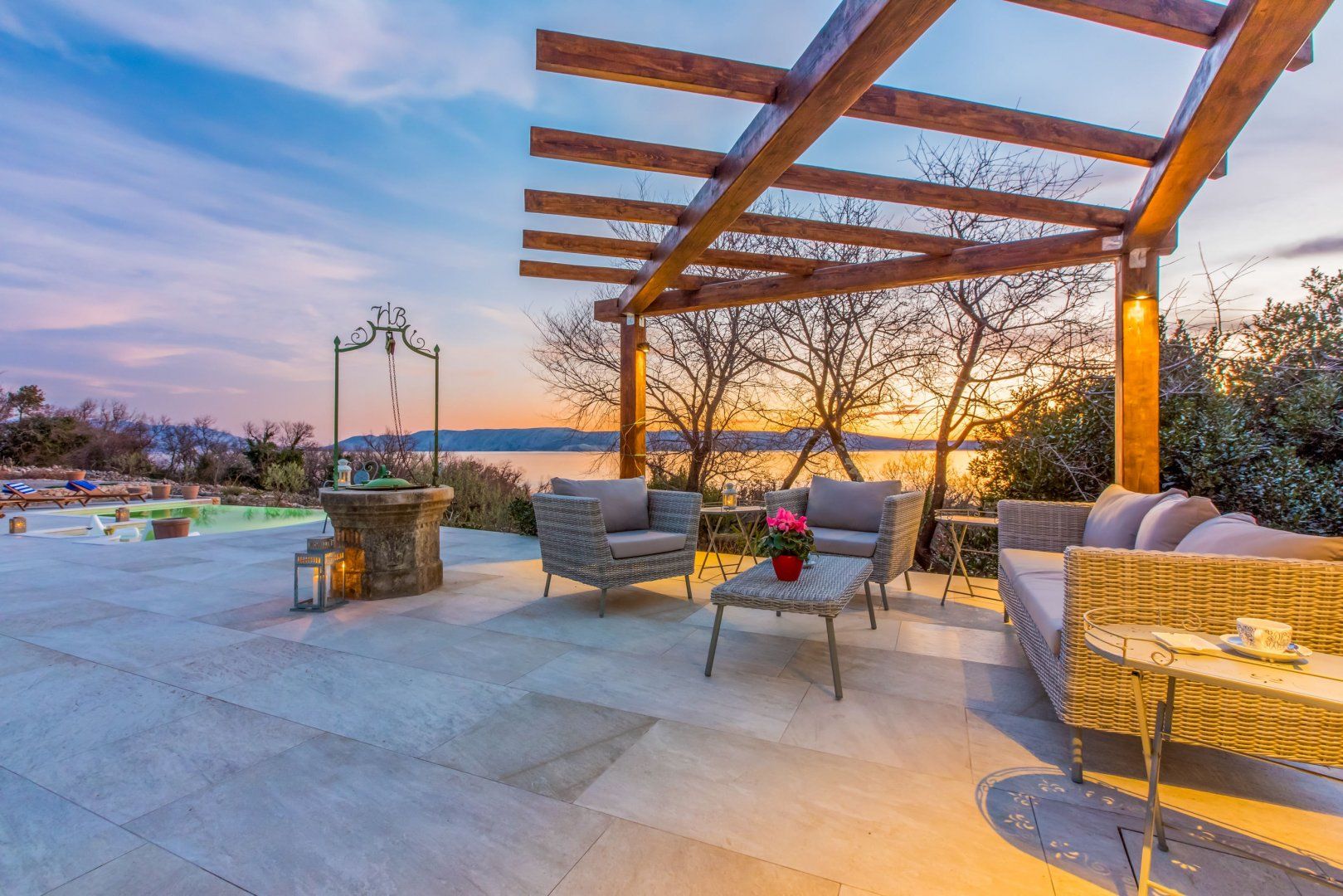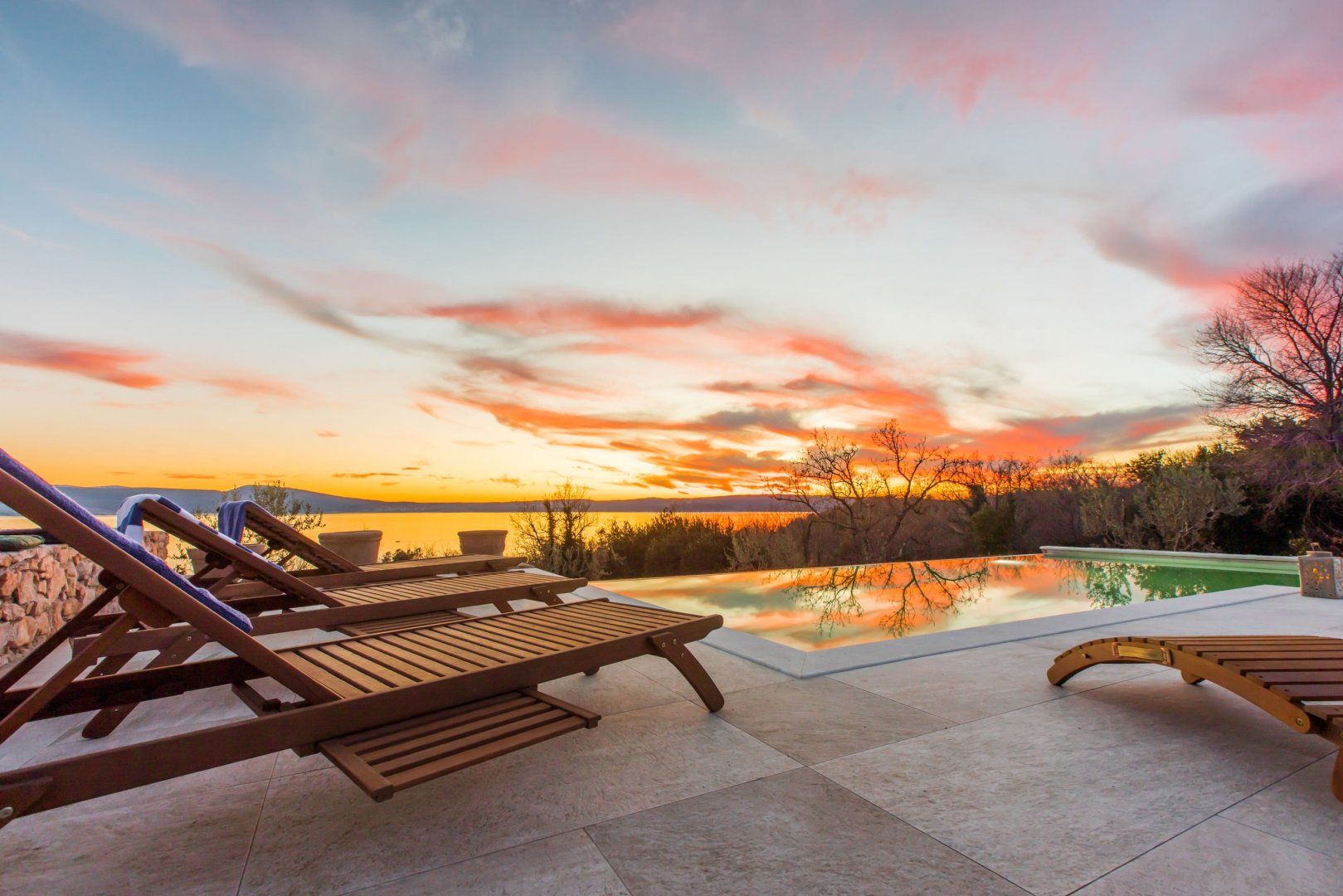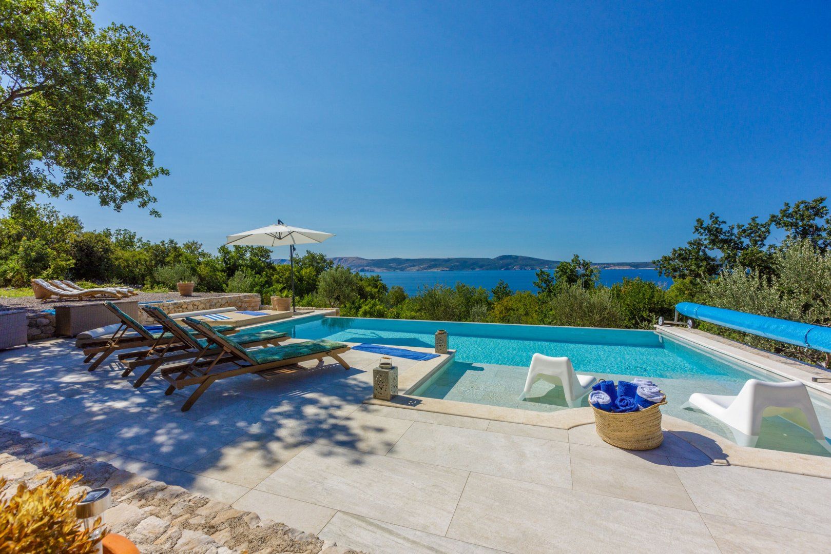 Perched on the Croatian coastline, this villa was designed to make the most of the Mediterranean sunshine and sweeping scenery. We're blown away by the views – they stretch from the garden's olive trees down to the sparkling Dumbocca Bay, and day or night, you'll want to sit out on the terrace and admire the vistas. It's easy to fall into a carefree lifestyle here – imagine endless days splashing in the infinity pool, afternoon strolls down to the cove and evenings spent sipping wine as the sun goes down over the water. You can dine in the ocean breeze underneath the covered terrace or fire up the built-in barbecue, or the hosts can arrange for a private chef if you don't feel like cooking. Carefully refurbished by the owners to restore the original architecture, the interior of this home marries modern living with rustic character. Stone walls and wooden ceilings add warmth, but upgrades like the Sonos audio system, marbled bathrooms and sleek farmhouse-style kitchen keep things contemporary. When you're not happily lounging by the pool, make the five-minute drive to Novi Vinodolski for restaurants, shops and lively beaches.