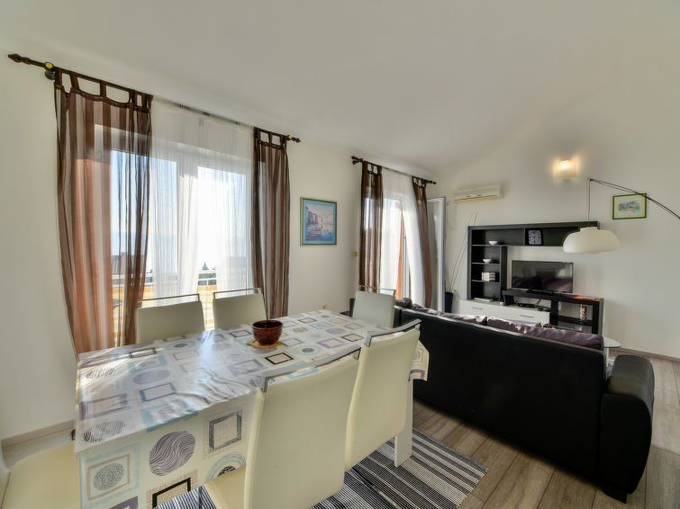 4-room apartment 85 m2 on 2nd floor, south facing position. Living/dining room 28 m2 with satellite TV (flat screen), air conditioning. Exit to the balcony. 1 room with sloping ceilings, ceiling height 230 - 345 cm with 1 double bed (2 x 80 cm, length 200 cm). 1 room with sloping ceilings, ceiling height 120 - 310 cm with 1 double bed (2 x 80 cm, length 200 cm).