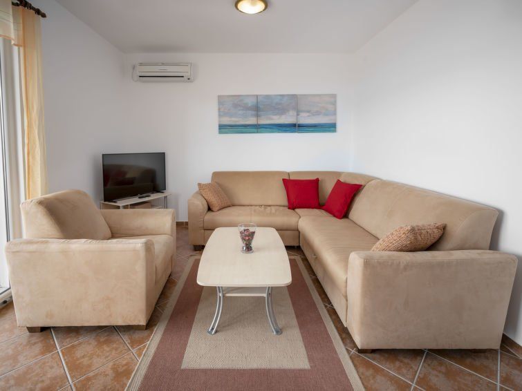 The pool is great (about 22°C in September). The view from the balcony fantastic. Every evening the full program sunset. The apartment is new and clean. The furniture is very simple and partly not 100% correct. The kitchen is maximally sufficient. Only two hobs and no oven. Cutlery and kitchen utensils minimal. Anyone planning to cook big will be disappointed. The place has a great beach, a few simple eateries and a tiny shop.