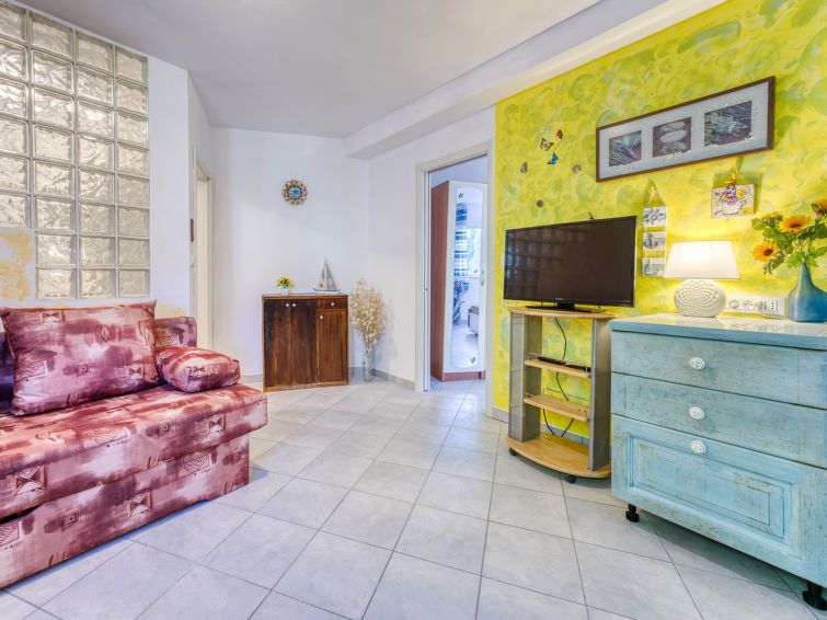 2-room bungalow 41 m2. Living/dining room with 1 double sofabed (140 cm, length 200 cm), satellite TV (flat screen). Exit to the terrace. 1 room with 1 double bed (2 x 80 cm, length 190 cm). Open kitchen (2 hot plates, microwave). Shower/bidet/WC. No heating option. Facilities: hair dryer.