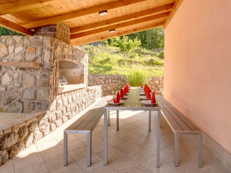 7-room house 200 m2. Large living room 55 m2 with open-hearth fireplace, cable TV and air conditioning. Exit to the terrace. 1 room with 1 french bed (2 x 90 cm, length 200 cm). Exit to the terrace. 1 room with 1 french bed (2 x 90 cm, length 200 cm). Large, open kitchen (oven, dishwasher, 4 induction hot plates, toaster, kettle, microwave, freezer, electric coffee machine).
