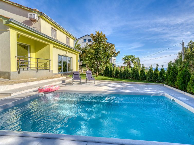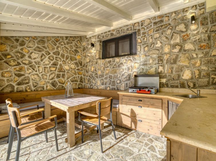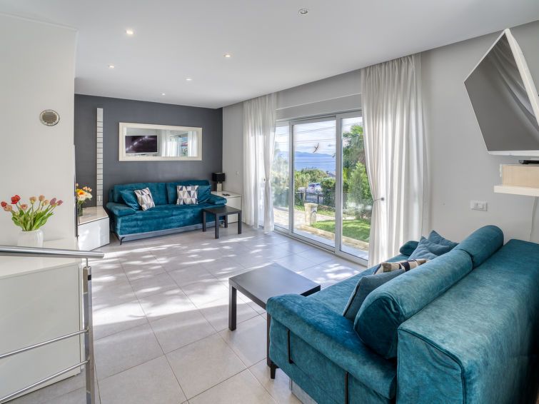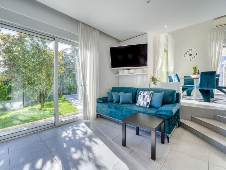 3-room semi-detached house 100 m2 on 2 levels, south facing position. Modern furnishings: living/dining room 40 m2 with panoramic window with 2 sofabeds (80 cm, length 200 cm), TV (flat screen), hi-fi system and air conditioning. Exit to the balcony, to the terrace. Open kitchen (oven, dishwasher, 4 ceramic glass hob hotplates, kettle, microwave, freezer, electric coffee machine).