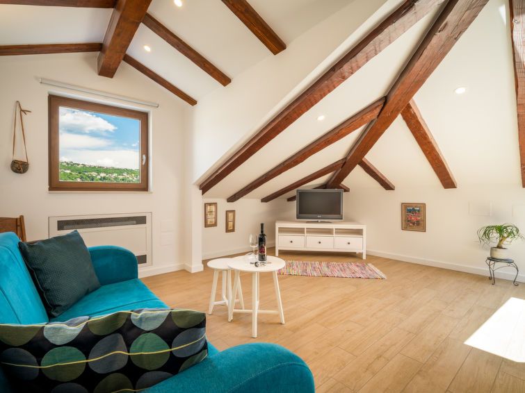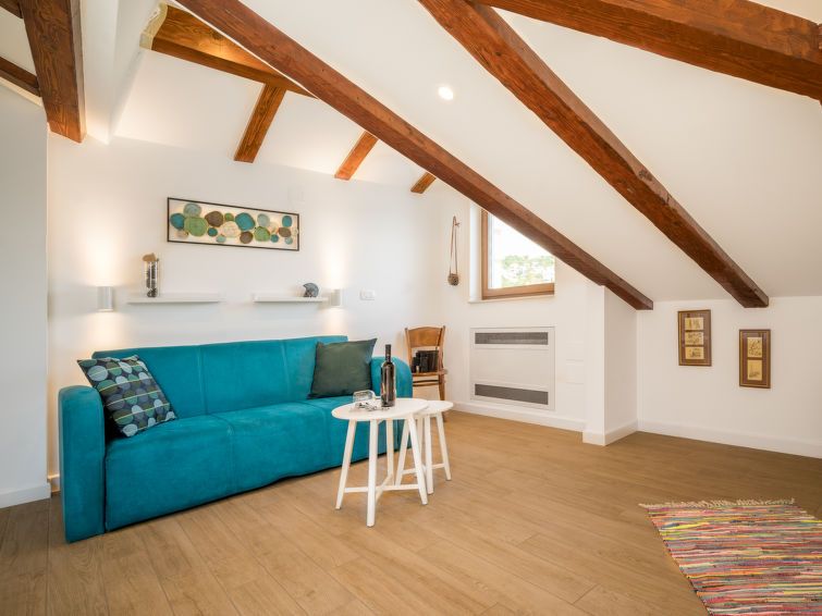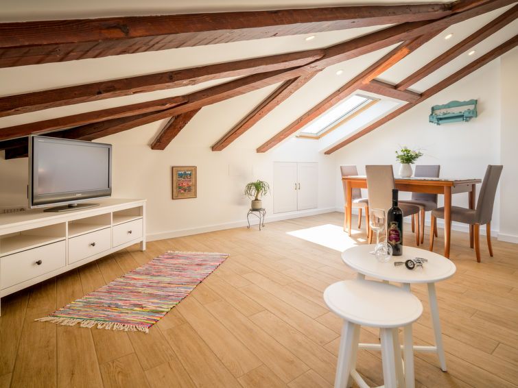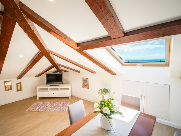 "Lara", 3-room apartment 90 m2, on the top floor, south facing position. Living/dining room with sloping ceilings, ceiling height 92 - 280 cm with cable TV (flat screen), air conditioning. 1 room with sloping ceilings, ceiling height 92 - 280 cm with rooflight with 1 french bed (160 cm, length 200 cm), air conditioning.