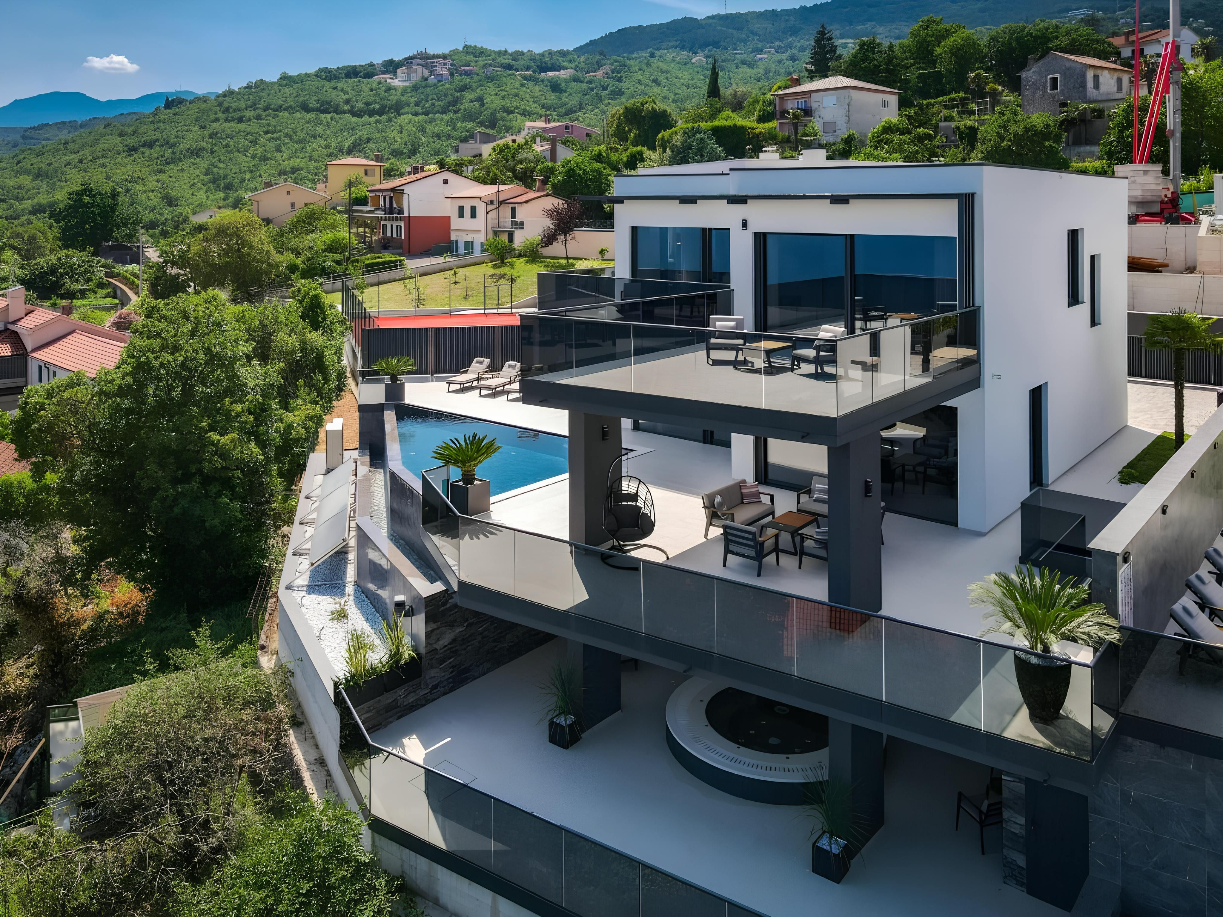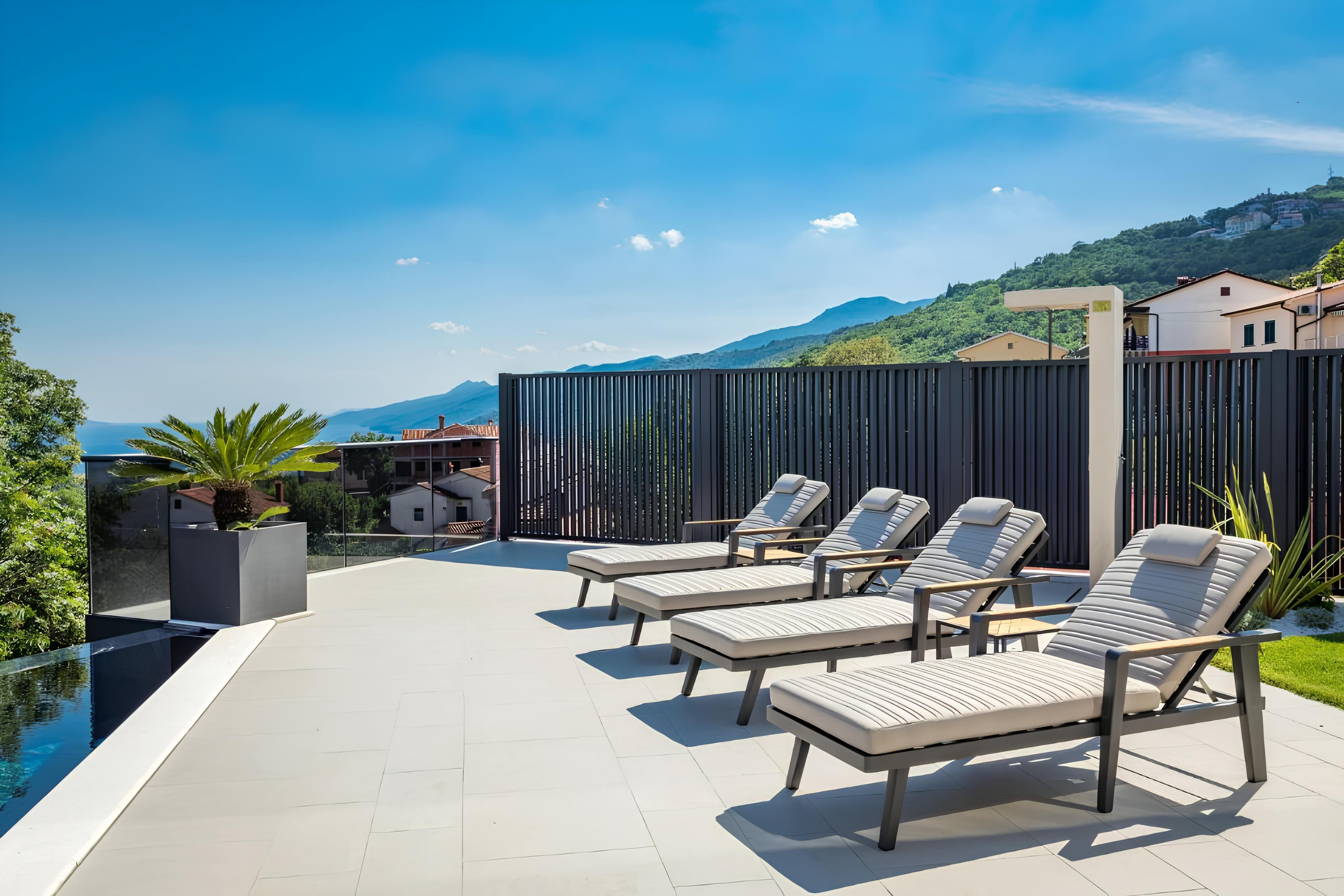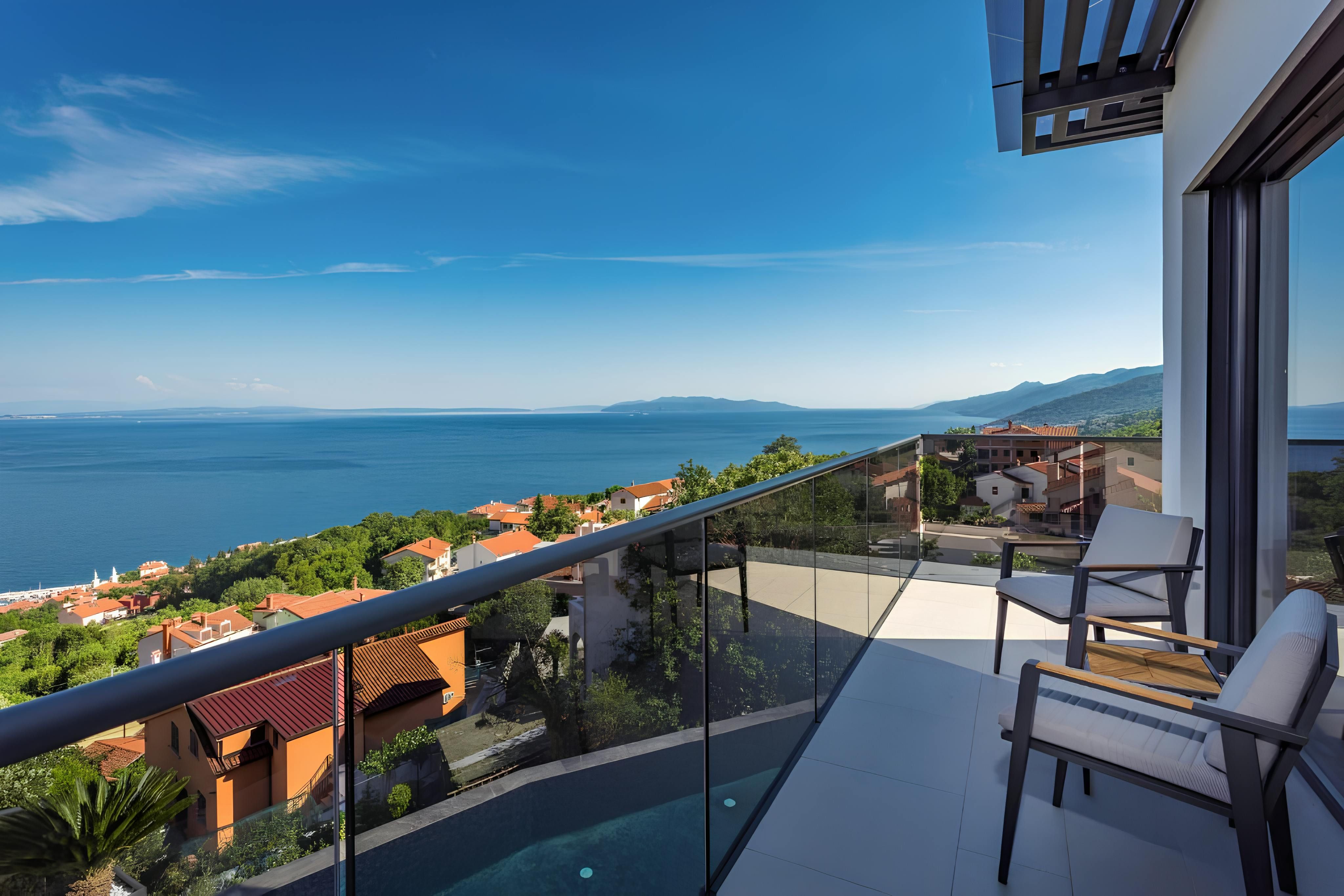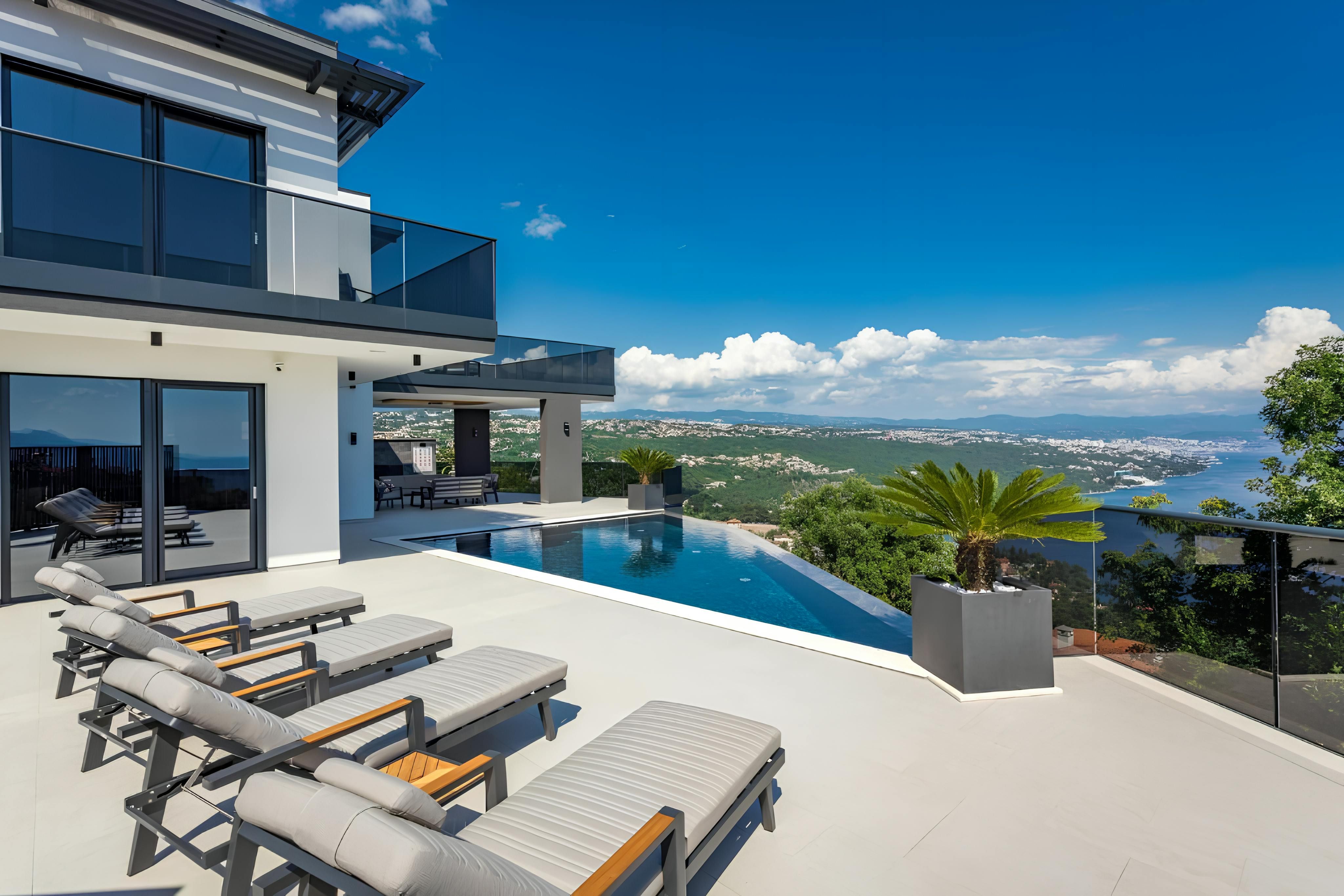 Infinity pool, sauna, hot tub, and sweeping sea views – this villa has all the makings of a dream getaway. Set on the outskirts of Rijeka, it strikes the perfect balance between convenience and escape, with tavernas and shops a short stroll away and the beach just 2 kilometres down the road. Inside, floor-to-ceiling windows and modern interiors flood the space with natural light, while outside, multiple terraces invite you to soak up the Adriatic scenery. Spread across several floors, the home also features a handy lift – making life easier and more convenient.