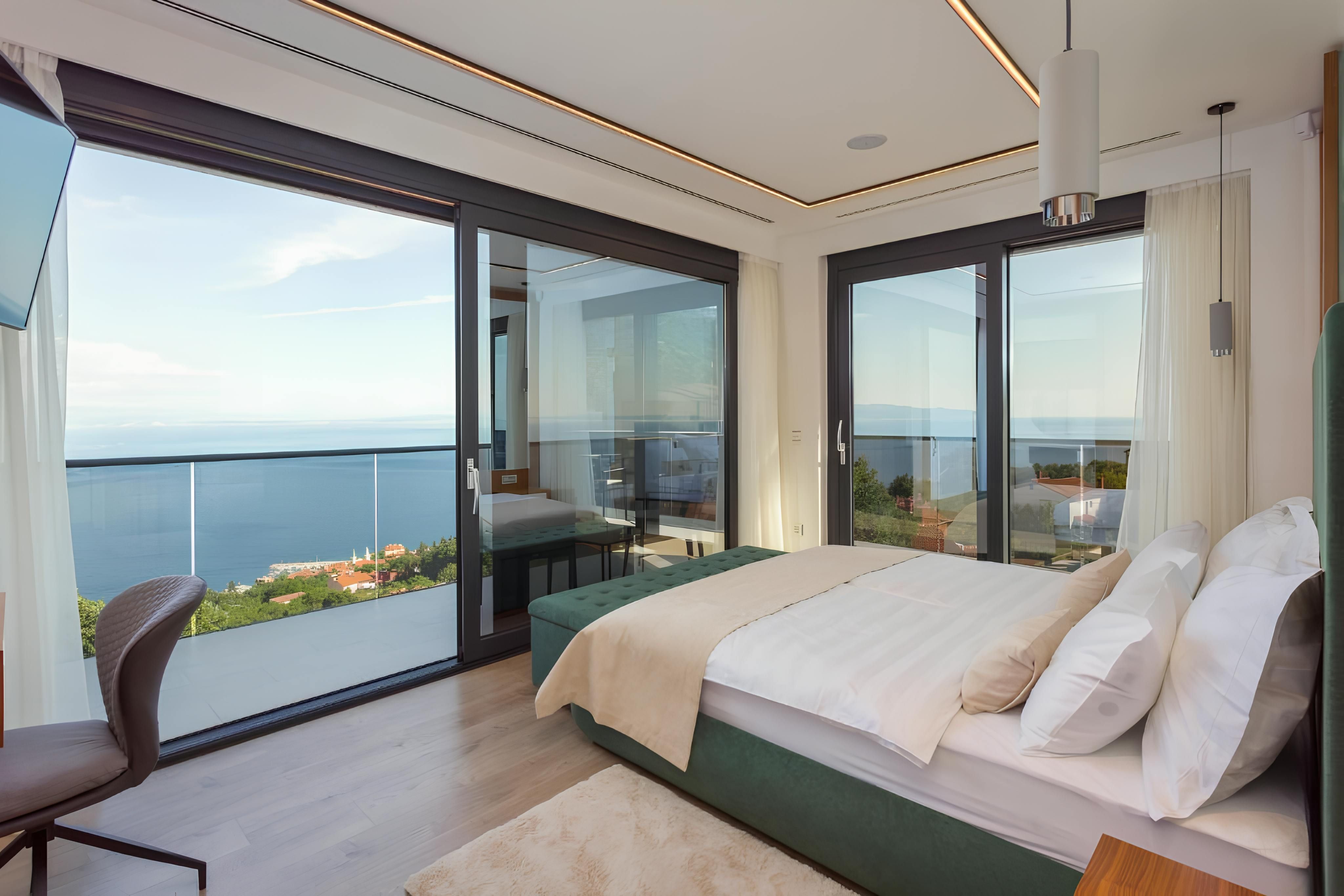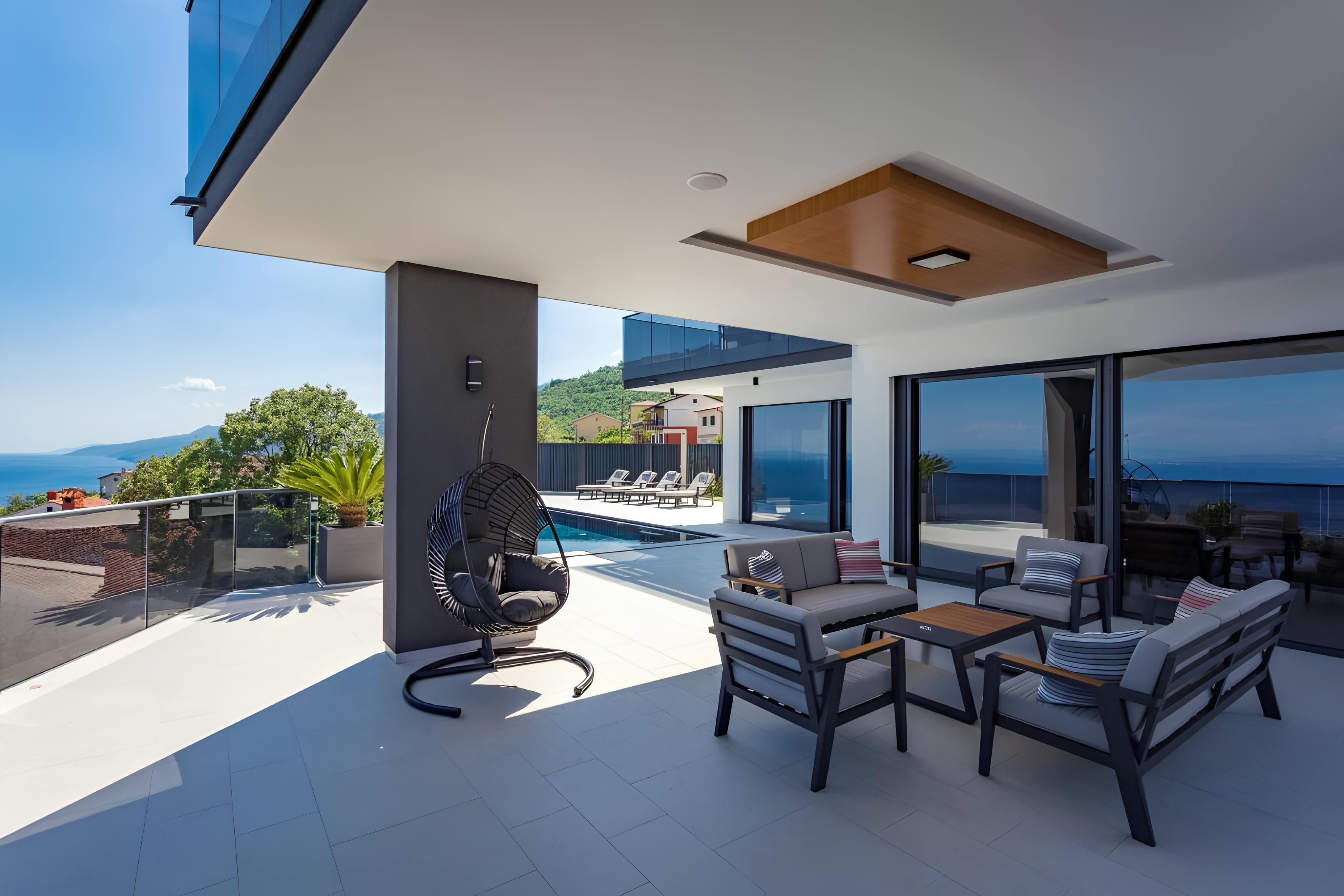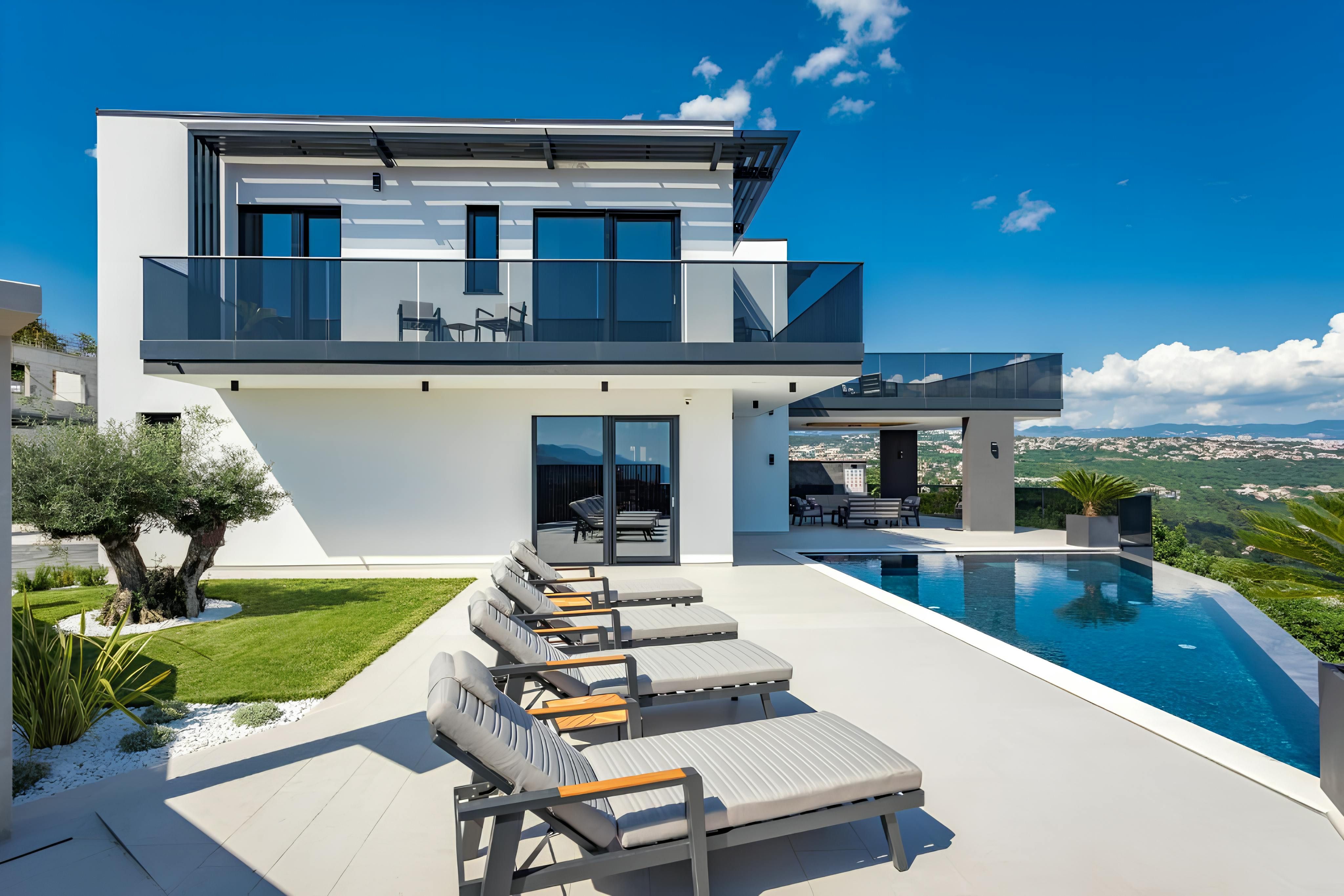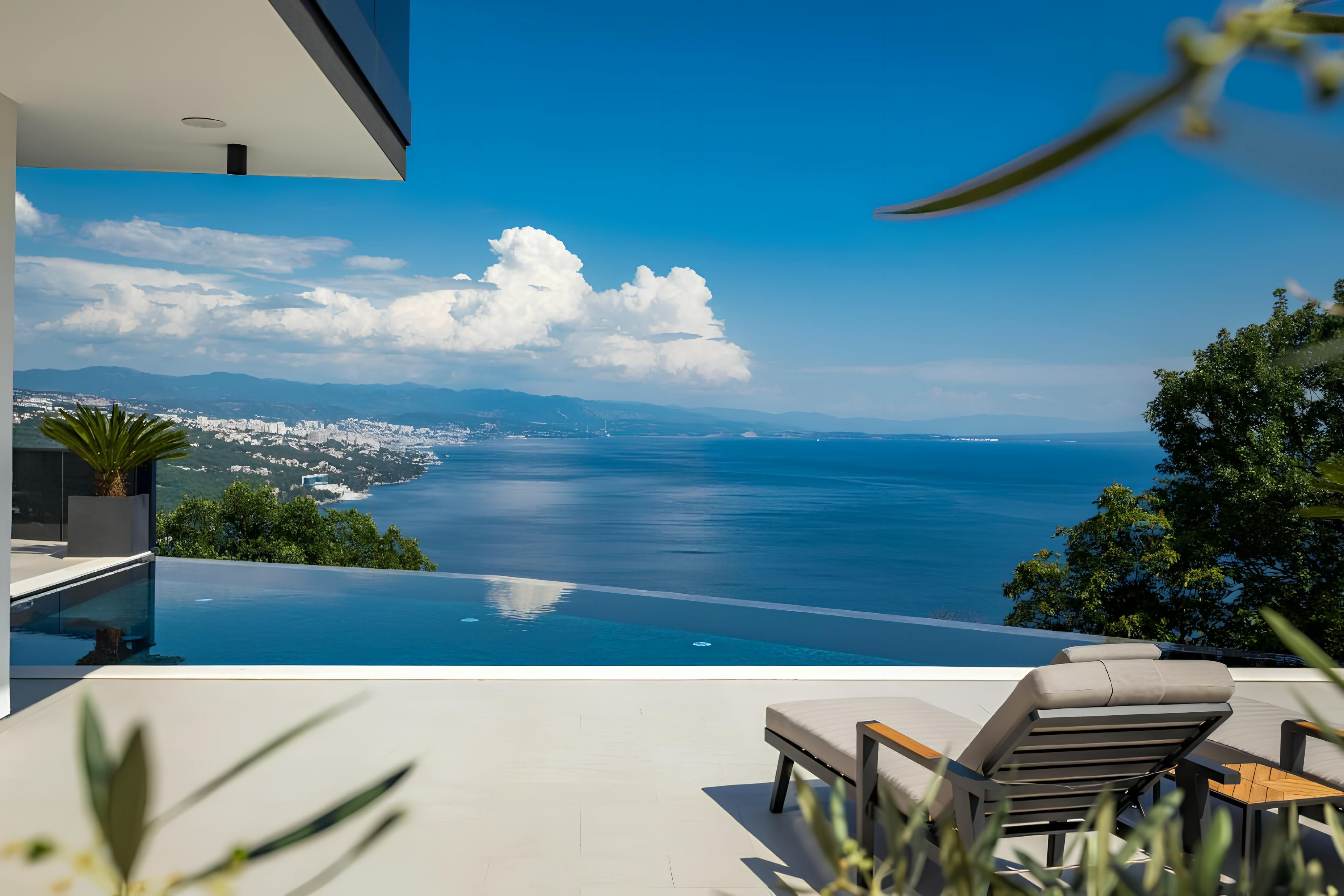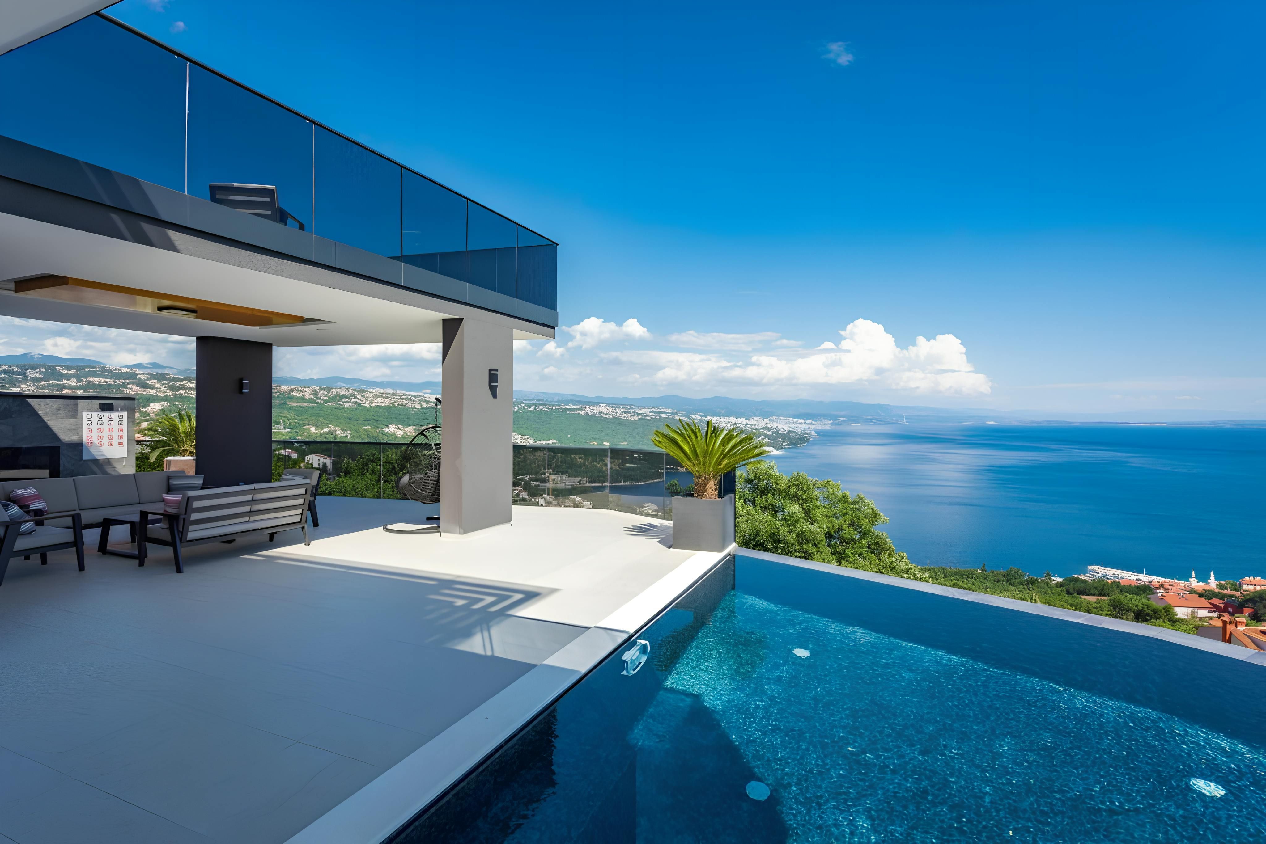 Infinity pool, sauna, hot tub, and sweeping sea views – this villa has all the makings of a dream getaway. Set on the outskirts of Rijeka, it strikes the perfect balance between convenience and escape, with tavernas and shops a short stroll away and the beach just 2 kilometres down the road. Inside, floor-to-ceiling windows and modern interiors flood the space with natural light, while outside, multiple terraces invite you to soak up the Adriatic scenery. Spread across several floors, the home also features a handy lift – making life easier and more convenient.