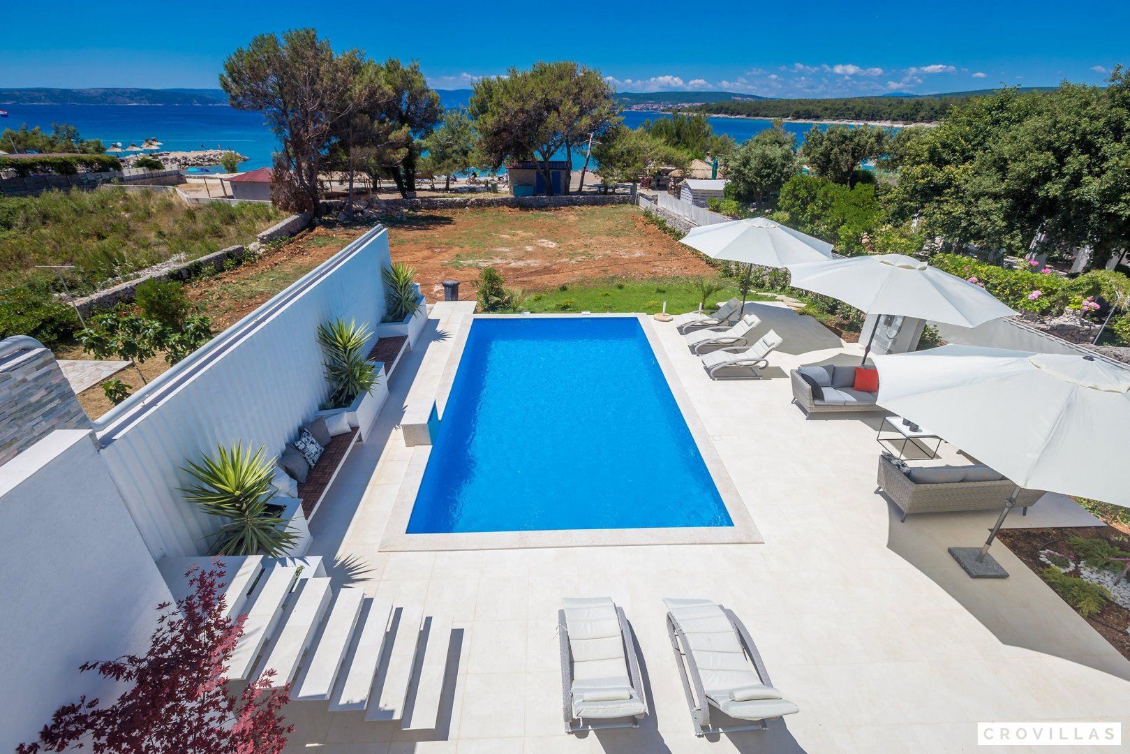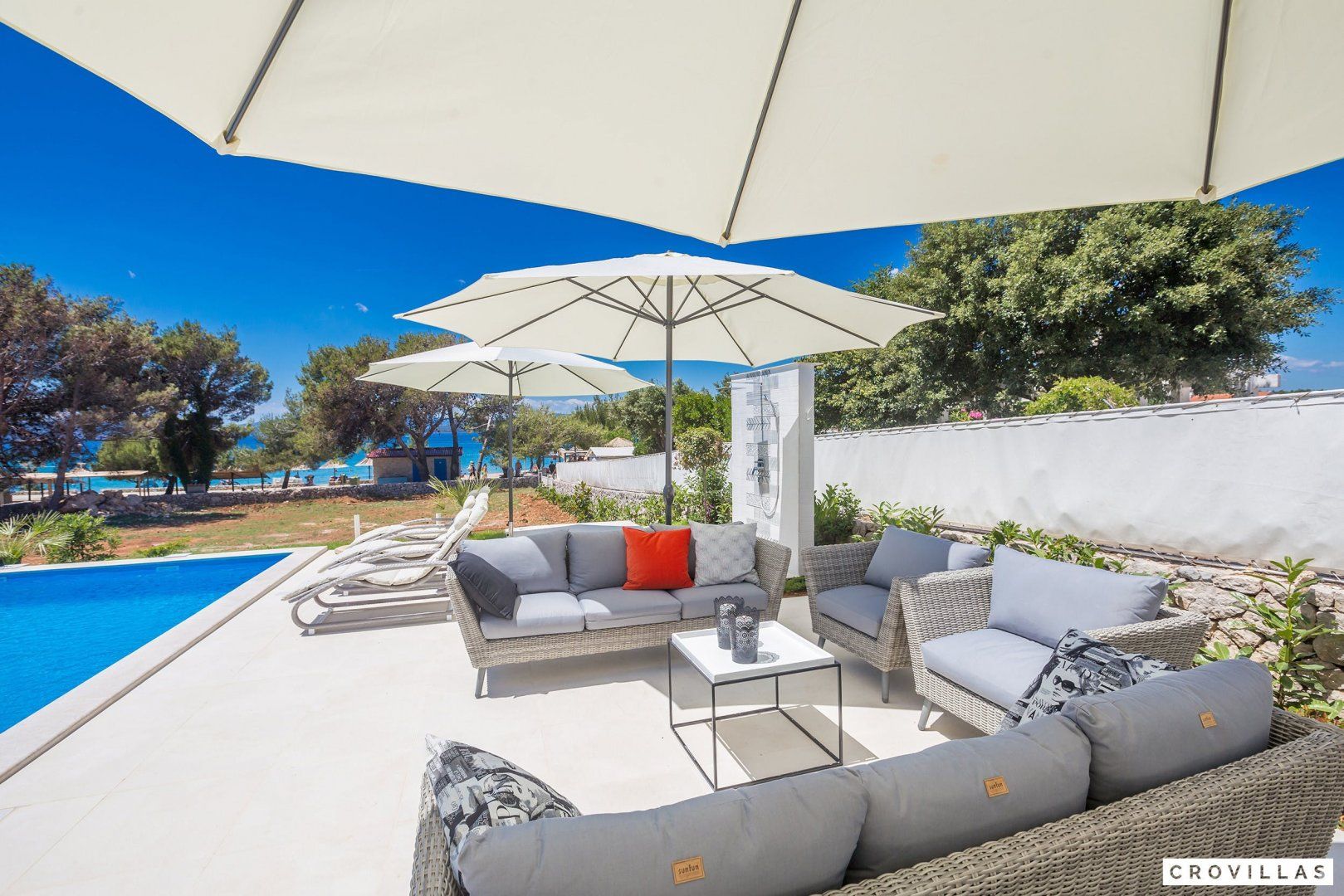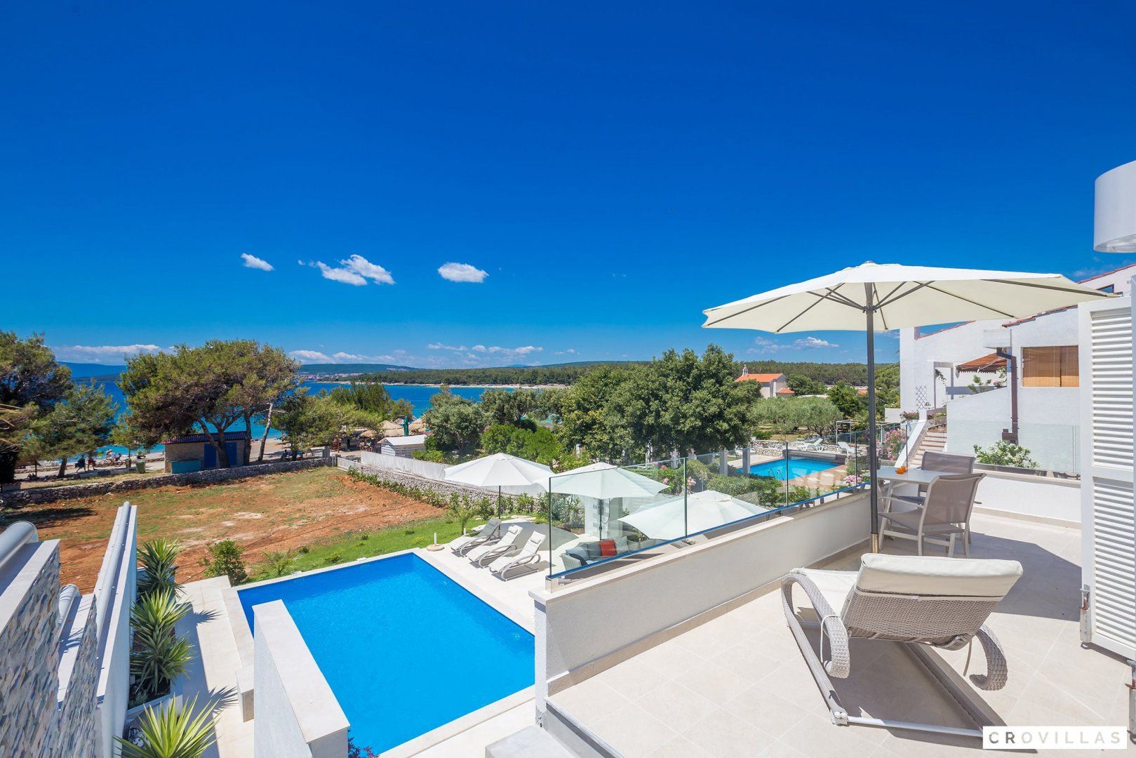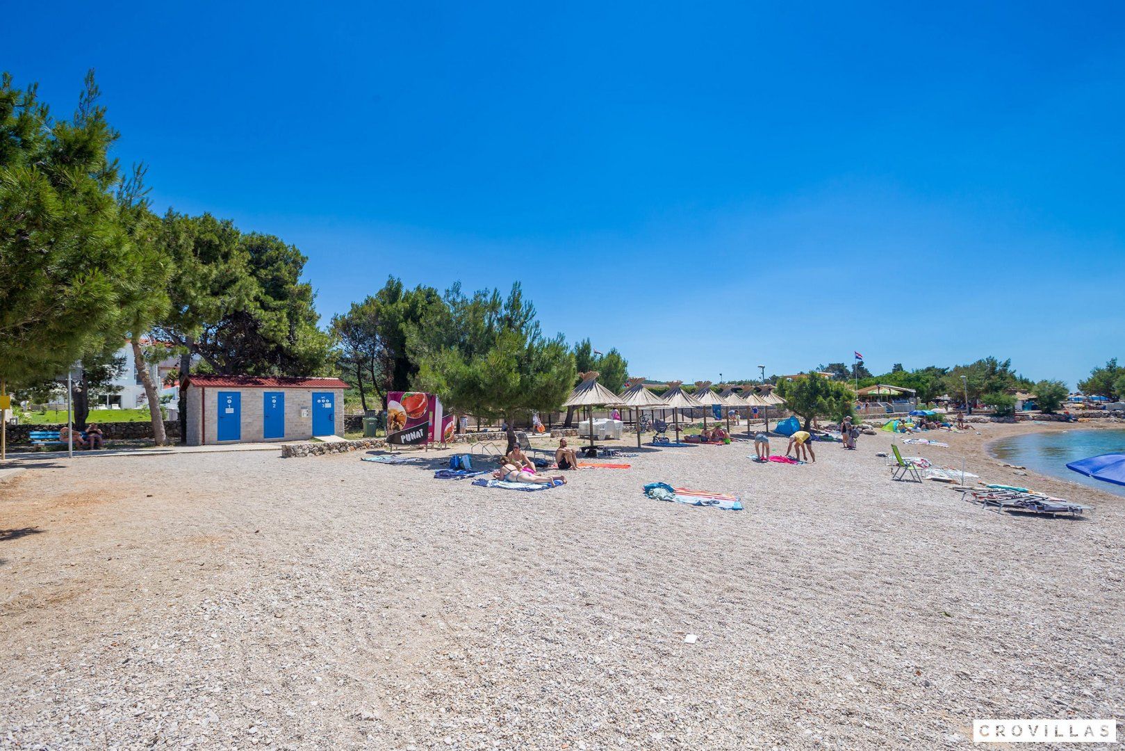 This stunning Croatian villa promises an unforgettable vacation with its breathtaking location and spectacular views. The property boasts modern amenities and top-notch furnishings for a comfortable and luxurious stay. With direct beach access from the garden, this is the perfect spot for a beach vacation with loved ones. The neighbouring aqua park with water slides is popular with younger guests, while adults can enjoy the beach bar located just in front of the home. The shallow entrance, gravel, and available sun loungers make the beach ideal for extensive beach days. Traditional restaurants along the small promenade to the centre of Punat offer a view of the harbour. Supermarkets are easily accessible on foot for extensive barbecue evenings. The island of Krk is conveniently accessible via a bridge, as is the nearest international airport of Rijeka (RJK), which is only 33 km away.