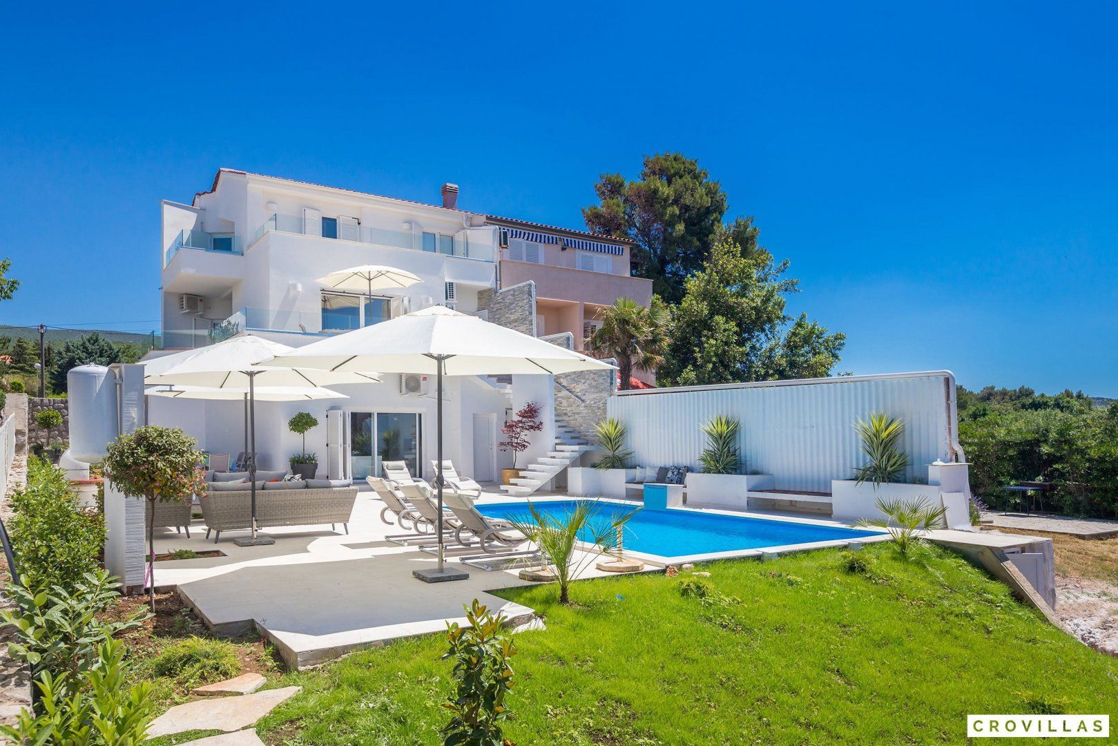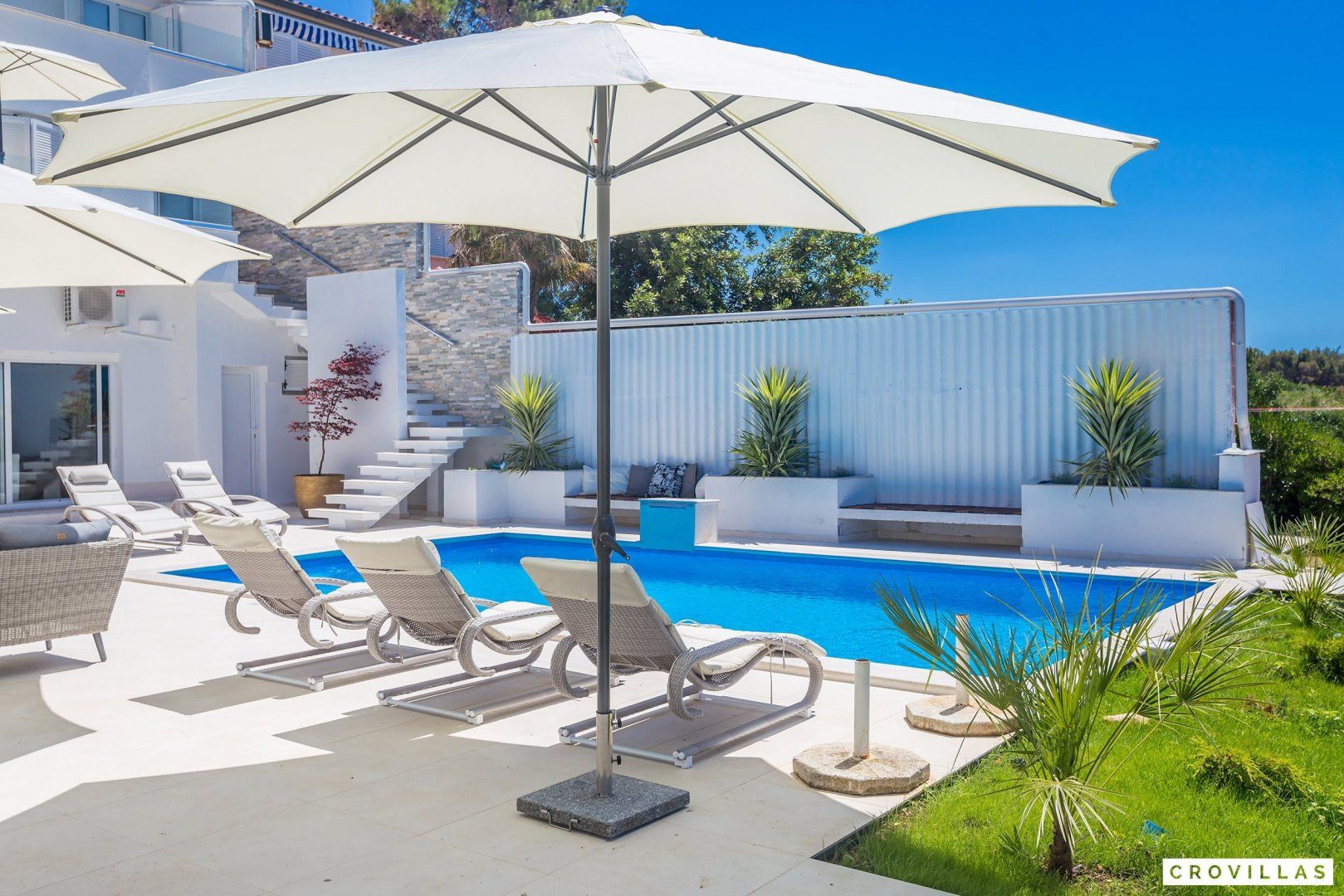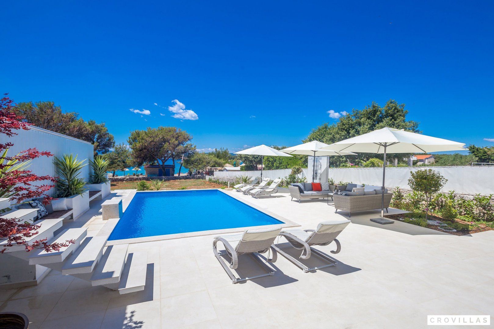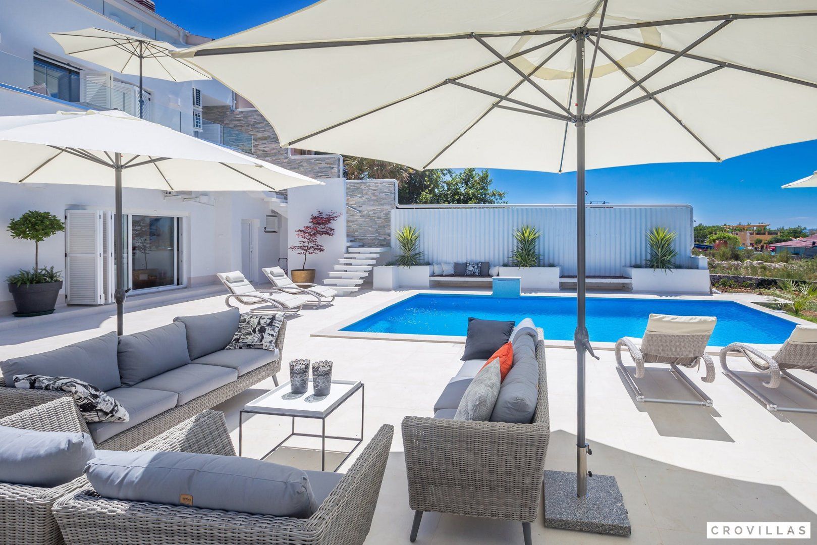 This stunning Croatian villa promises an unforgettable vacation with its breathtaking location and spectacular views. The property boasts modern amenities and top-notch furnishings for a comfortable and luxurious stay. With direct beach access from the garden, this is the perfect spot for a beach vacation with loved ones. The neighbouring aqua park with water slides is popular with younger guests, while adults can enjoy the beach bar located just in front of the home. The shallow entrance, gravel, and available sun loungers make the beach ideal for extensive beach days. Traditional restaurants along the small promenade to the centre of Punat offer a view of the harbour. Supermarkets are easily accessible on foot for extensive barbecue evenings. The island of Krk is conveniently accessible via a bridge, as is the nearest international airport of Rijeka (RJK), which is only 33 km away.