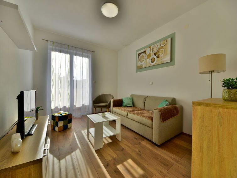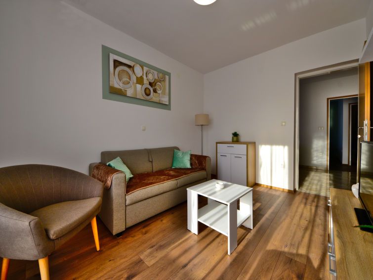 3-room apartment 60 m2 on 1st floor. Living/dining room with 1 double sofabed (140 cm, length 200 cm), satellite TV and digital TV. Exit to the balcony. 1 room with 1 french bed (160 cm, length 200 cm), shower/WC. 1 room with 1 french bed (160 cm, length 200 cm). Exit to the balcony.
