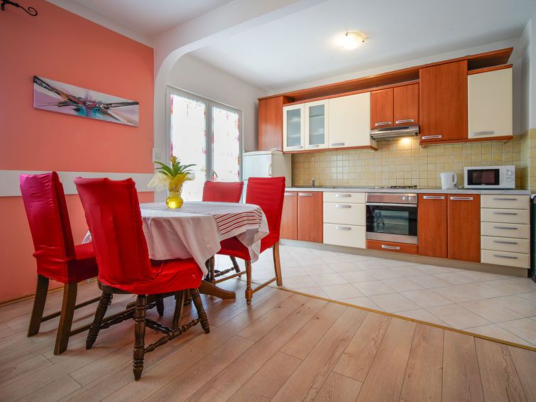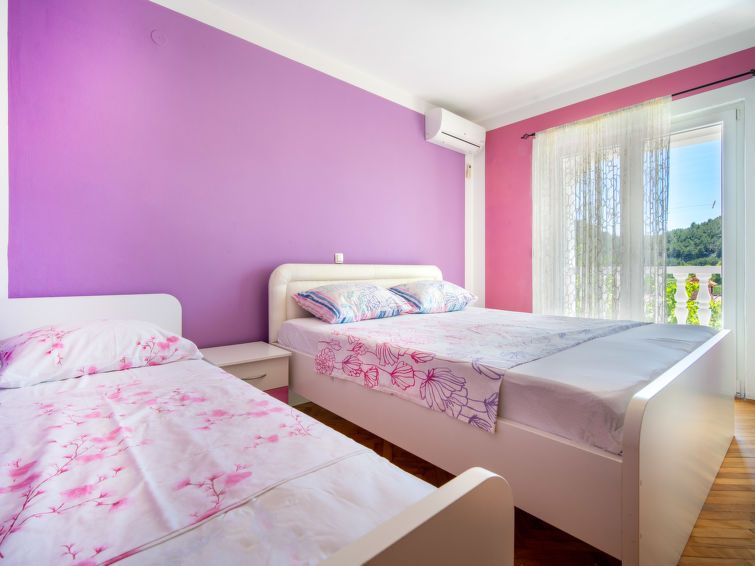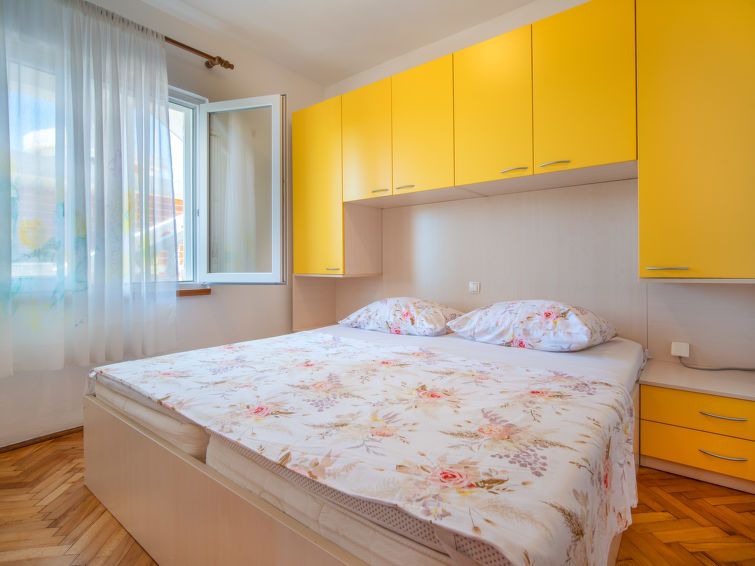 4-room apartment 80 m2 on 1st floor. Living/dining room with satellite TV (flat screen), wood-burning stove. 1 room with 1 double bed (2 x 90 cm, length 200 cm), air conditioning. 1 room with 1 french bed (160 cm, length 200 cm), air conditioning. Exit to the balcony. 1 room with 1 bed (80 cm, length 200 cm), 1 double bed (2 x 90 cm, length 200 cm), satellite TV (flat screen), air conditioning.