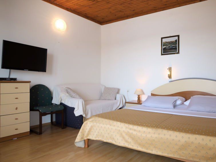 "Ana", 2-room apartment 50 m2 on 1st floor. 1 room with 1 double bed (2 x 100 cm, length 220 cm). 1 room with 1 french bed (180 cm, length 200 cm), satellite TV and air conditioning. Exit to the balcony. Kitchen-/living room (2 hot plates, toaster, kettle, microwave, freezer, electric coffee machine) with dining table.
