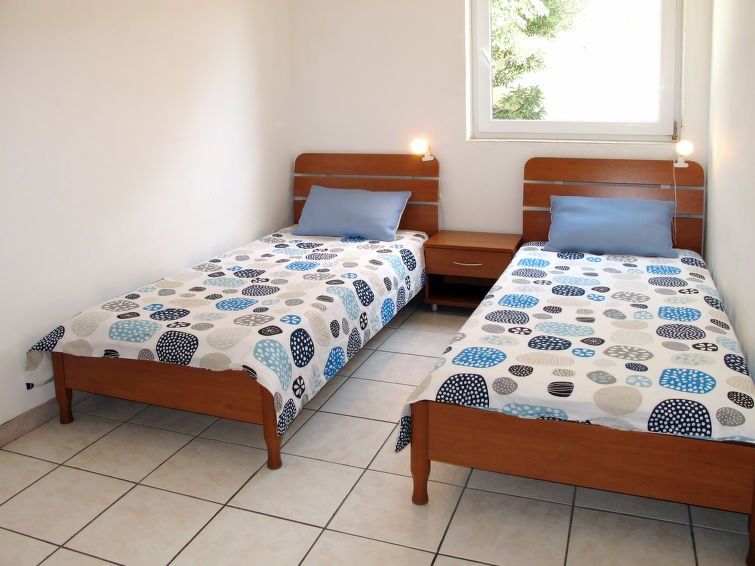 "Andrea", 3-room apartment 47 m2, on the ground floor. Living/dining room with satellite TV and air conditioning. Exit to the terrace. 1 room (2 x 80 cm, length 200 cm). 1 room with 2 beds (90 cm, length 200 cm). Open kitchen (2 hot plates, toaster, kettle, microwave, electric coffee machine).