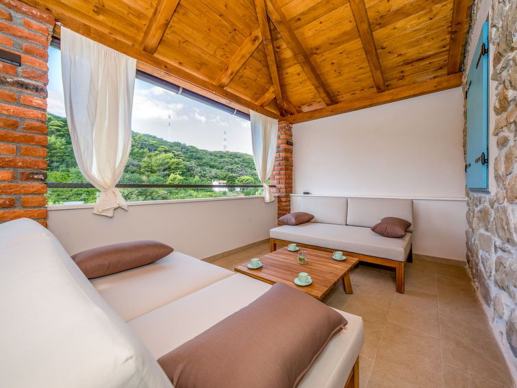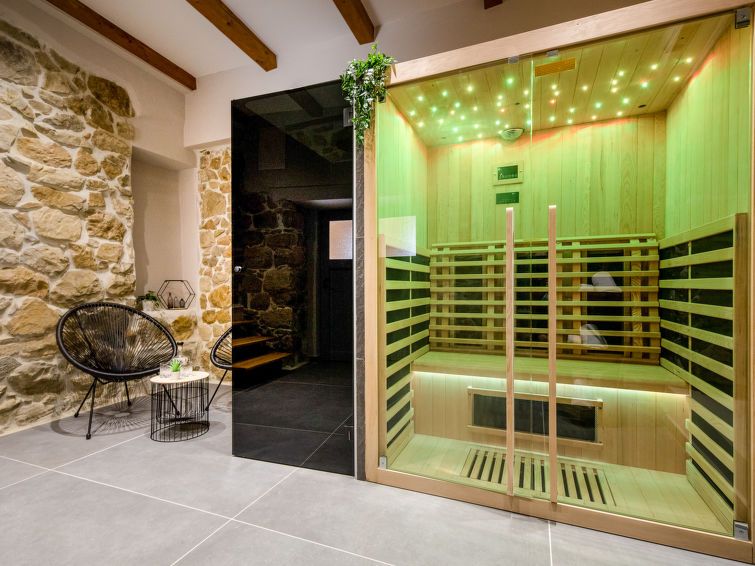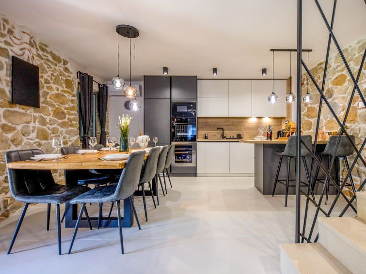 6-room house 270 m2 on 3 levels. Living/dining room with satellite TV (flat screen). Exit to the terrace. Dining room with open-hearth fireplace. Exit to the swimming pool. Open kitchen (4 hot plates, oven, dishwasher, microwave, freezer, grill, electric coffee machine) with dining table.