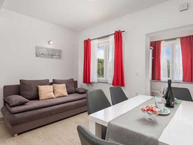 "Simicic", 4-room apartment 72 m2 on 1st floor. Bright, renovated in 2019, modern furnishings: living/dining room with 1 double sofabed (160 cm, length 200 cm), kitchen corner, satellite TV and international TV channels. 2 rooms, each room with 1 french bed (160 cm, length 200 cm), air conditioning.