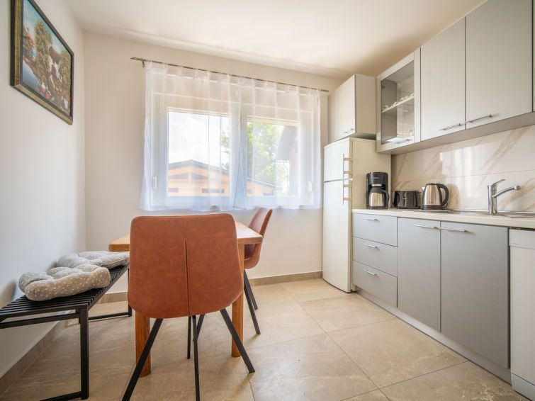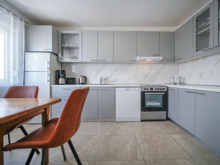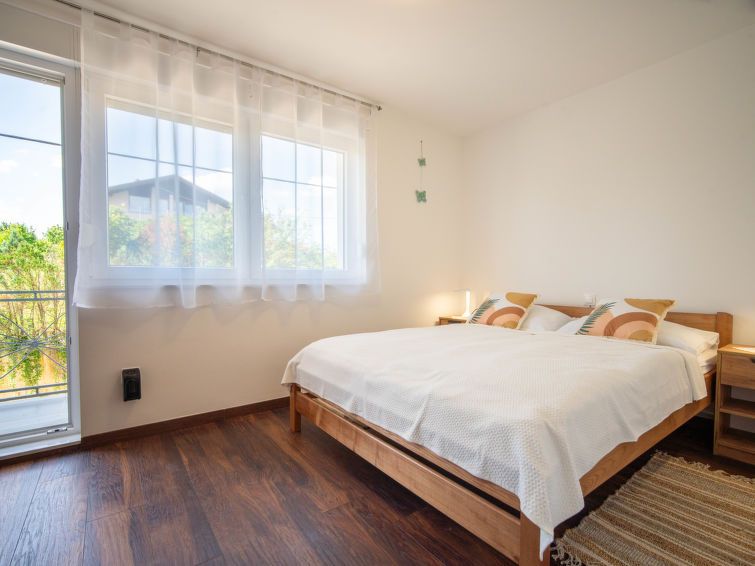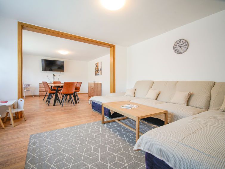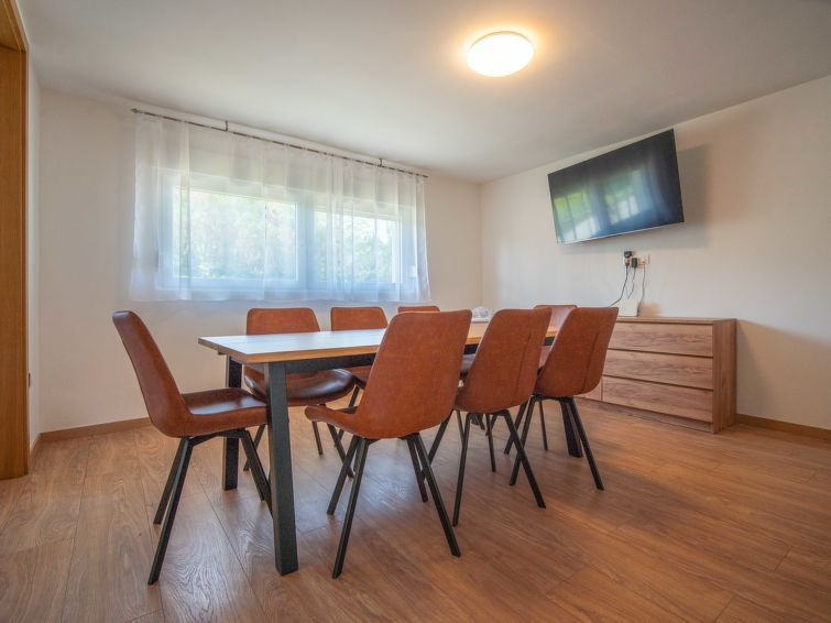 4-room house 140 m2 on 2 levels. Living/dining room with cable TV (flat screen), wood-burning stove. Open kitchen (oven, dishwasher, 4 ceramic glass hob hotplates, toaster, kettle, freezer, electric coffee machine). Shower/WC. Upper floor: 1 room with 1 double bed (2 x 80 cm, length 200 cm).