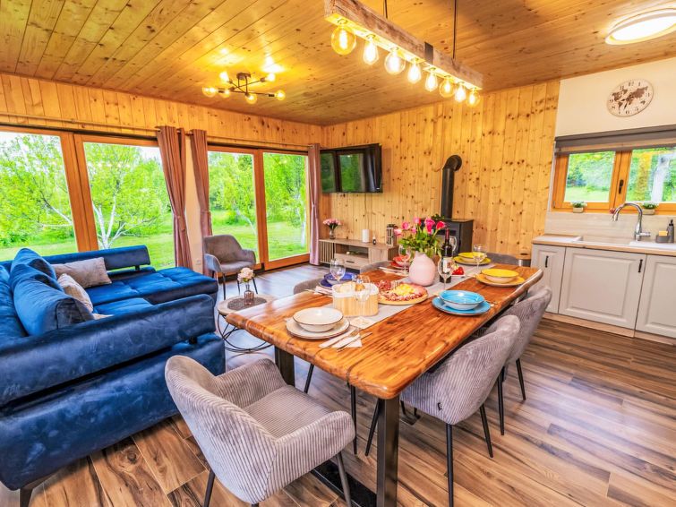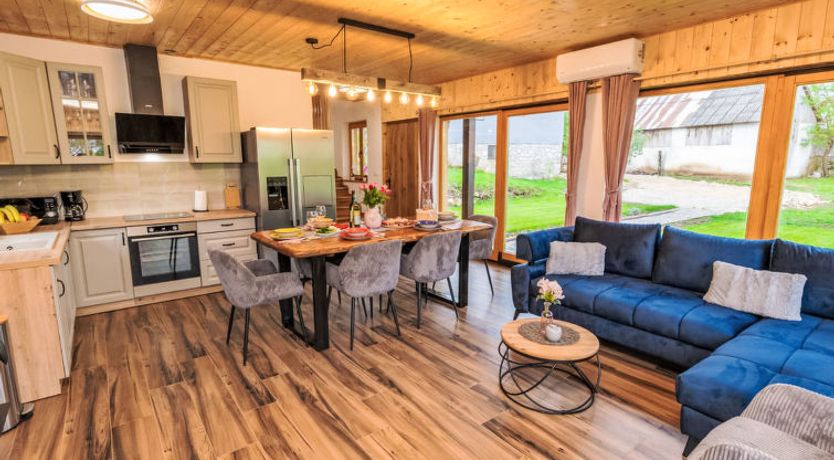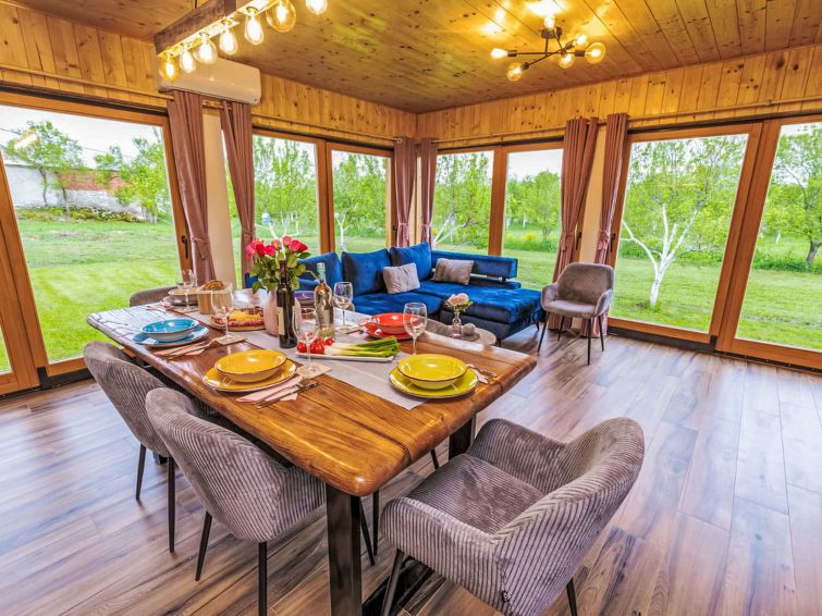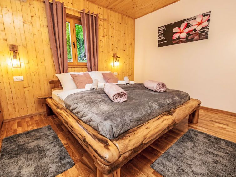 3-room house 125 m2 on 2 levels. Cosy and wooden furniture furnishings: living/dining room with 1 double sofabed (140 cm, length 200 cm), open-hearth fireplace, satellite TV and air conditioning. 1 room with 1 french bed (160 cm, length 200 cm), air conditioning. Open kitchen (oven, dishwasher, 4 ceramic glass hob hotplates, freezer, electric coffee machine).