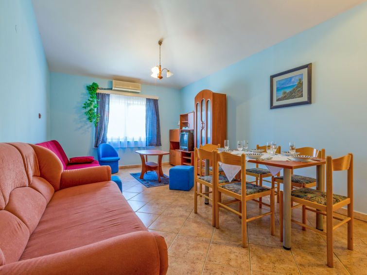 Location close to the beach, near a bakery stand until 12.00, shop 700 m, roads. Delfin restaurant average. Cesarica Restaurant - avoid, monstrously expensive and bad, fish soup is water with 3 pieces of fish! Room as appropriate, but air conditioning only in 1 room. In the apartment, the ants enter through gaps near the floor, they have to be exterminated all the time. The facility was guarded by a very nice lady who speaks English well, but a big plus! Wifi does not work sometimes, not always hot water with a large number of guests!