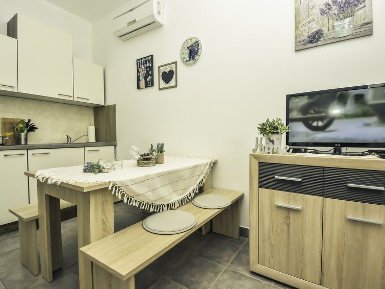 Apartment in the center, close to the beach, marina, cafes, restaurants, supermarkets. The owner, a nice, cheerful and very friendly woman. Housing clean, like new, fragrant towels and linens, the interior is very comfortable and tastefully furnished and equipped. A refreshment awaited us in the room, and the lady owner greeted us warmly. With a pure heart, I can recommend a stay in such a pleasant place.