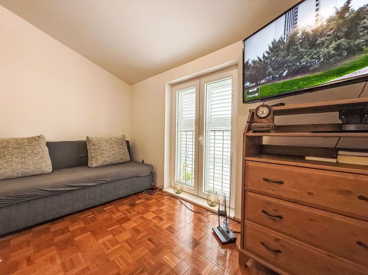 3-room apartment 50 m2 on 2 levels. 2nd upper floor: 1 room with 2 beds. 1 room with 1 beds and 1 double beds. Small kitchen (2 hot plates). Shower/WC. Heating, air-conditioning. Parquet floors. View of the sea. Facilities: washing machine. Internet (WiFi, free).