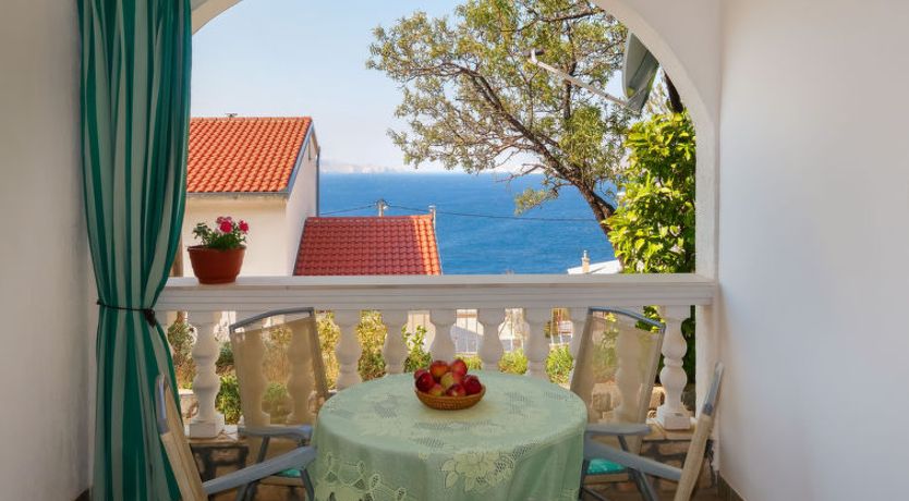 2-room apartment 50 m2, on the upper ground floor. Entrance hall with air conditioning. 1 room with 1 french bed (180 cm, length 200 cm), shower/WC. 1 room with 1 sofabed (120 cm, length 200 cm), 1 french bed (160 cm, length 200 cm). Exit to the terrace. Kitchen-/living room (2 hot plates, toaster, kettle, microwave, freezer, electric coffee machine) with dining table, satellite TV.