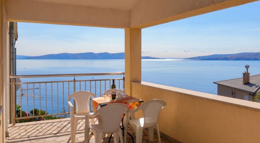"Ivana", 2-room apartment 45 m2 on 1st floor. Living/dining room with 1 double sofabed (140 cm, length 200 cm), satellite TV and air conditioning. Exit to the balcony. 1 room with 1 french bed (160 cm, length 200 cm). Open kitchen (2 hot plates, toaster, kettle, microwave, electric coffee machine).